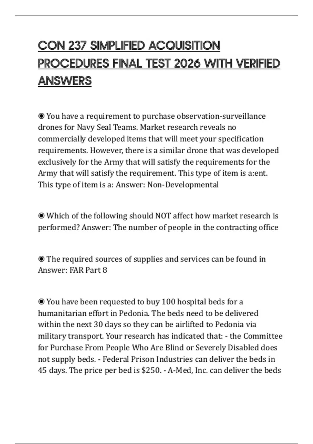CON 237 SIMPLIFIED ACQUISITION PROCEDURES FINAL TEST 2026 WITH VERIFIED ANSWERS