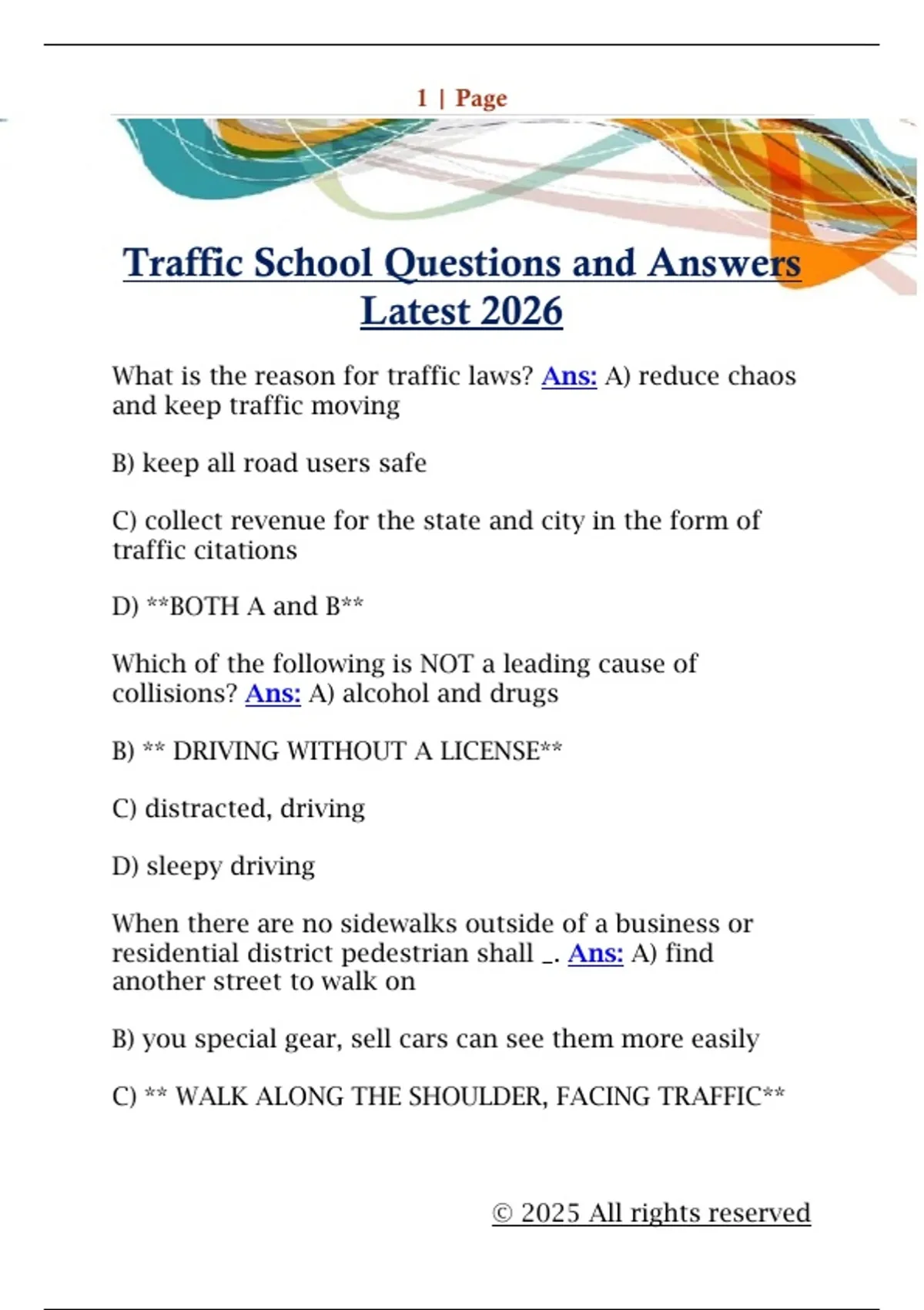 Traffic School Questions and Answers