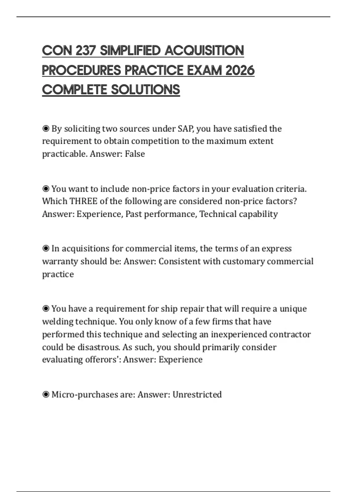 CON 237 SIMPLIFIED ACQUISITION PROCEDURES PRACTICE EXAM 2026 COMPLETE SOLUTIONS