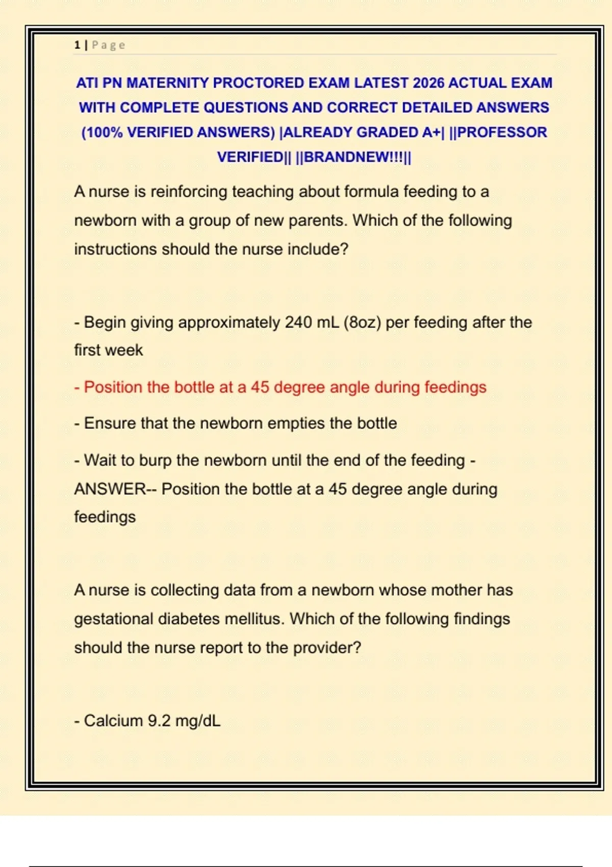 ATI PN MATERNITY PROCTORED EXAM LATEST 2026 ACTUAL EXAM
