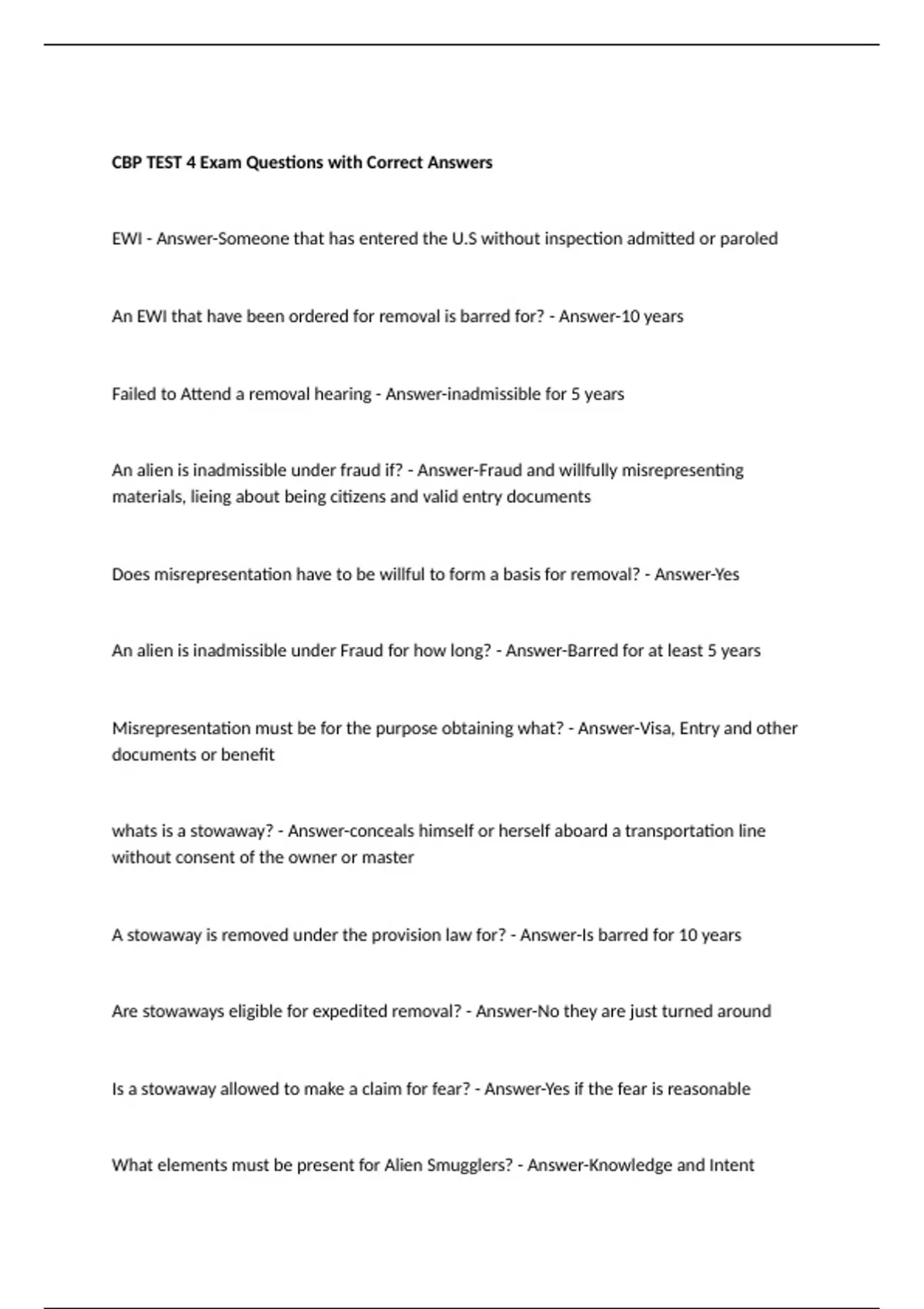 CBP TEST 4 Exam Questions with Correct Answers
