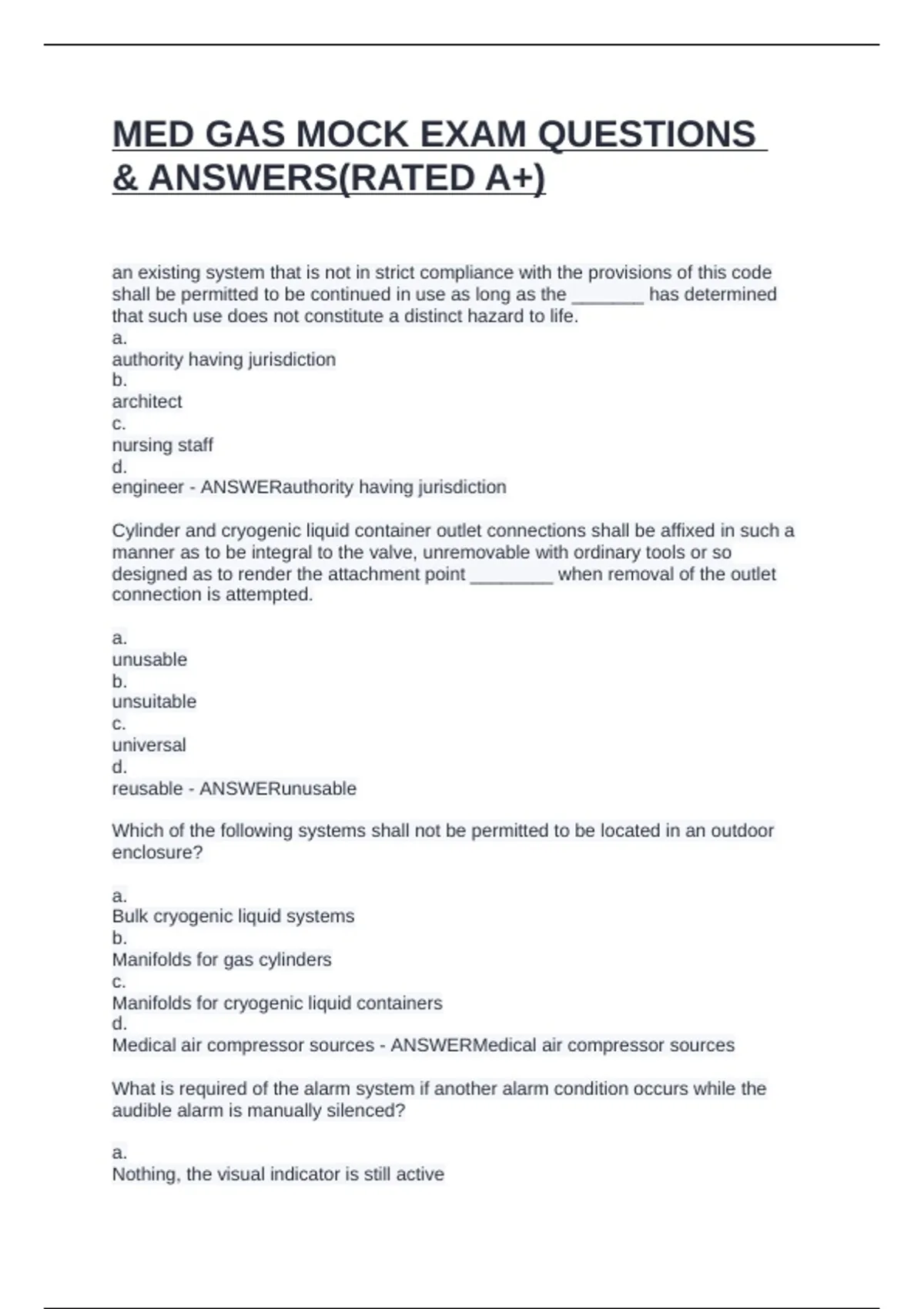 MED GAS MOCK EXAM QUESTIONS & ANSWERS(RATED A+)
