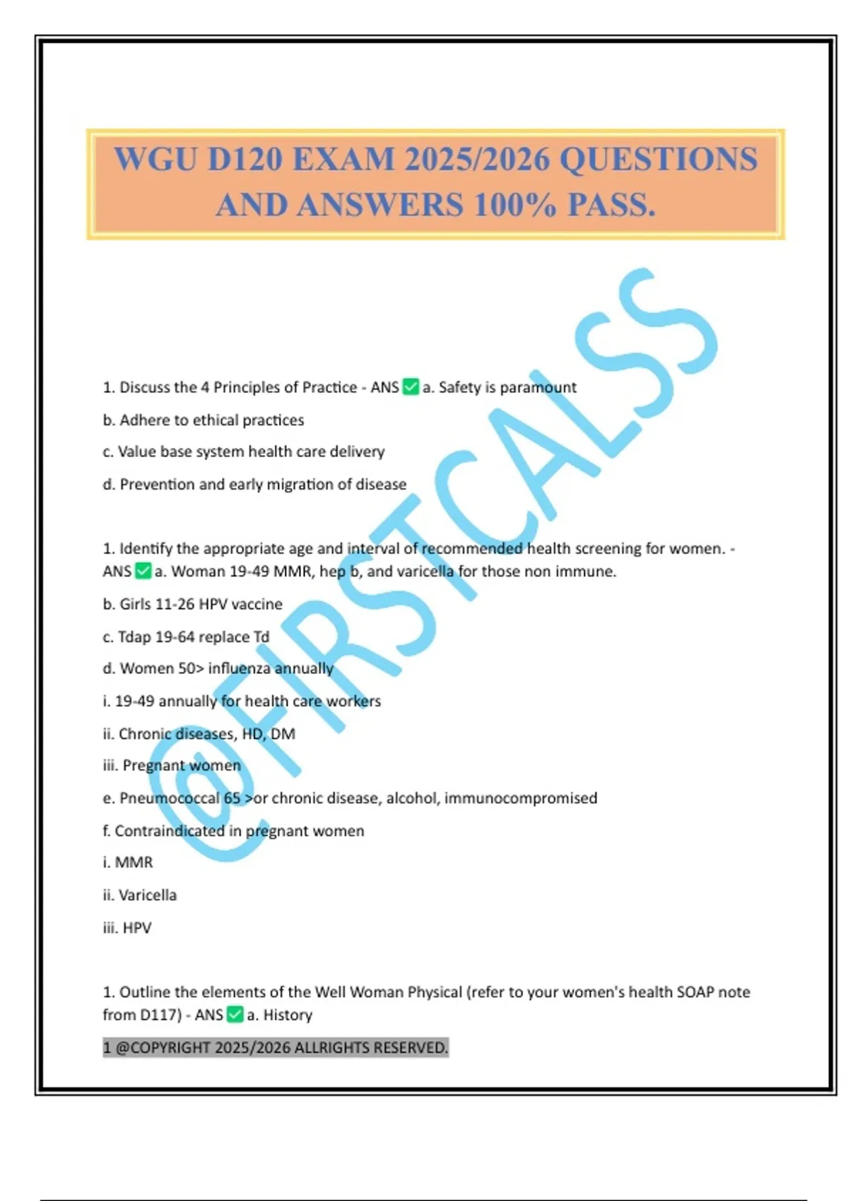 WGU D120 EXAM 2025/2026 QUESTIONS AND ANSWERS 100% PASS.