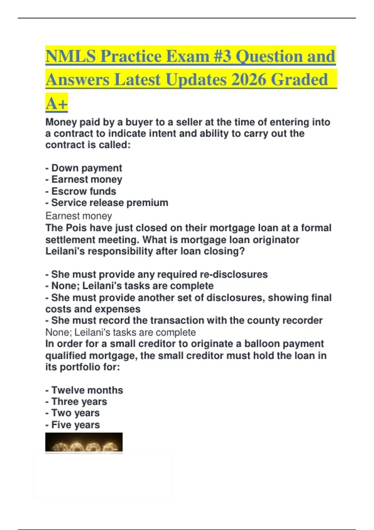 NMLS Practice Exam #3 Question and Answers Latest Updates 2026 Graded A+