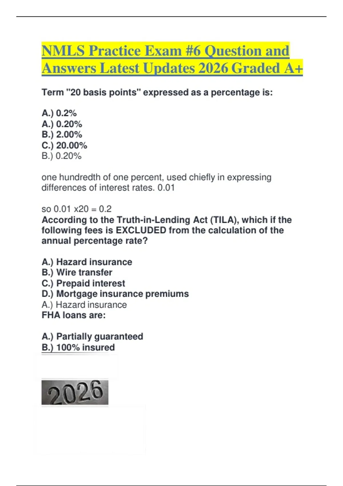 NMLS Practice Exam #6 Question and Answers Latest Updates 2026 Graded A+