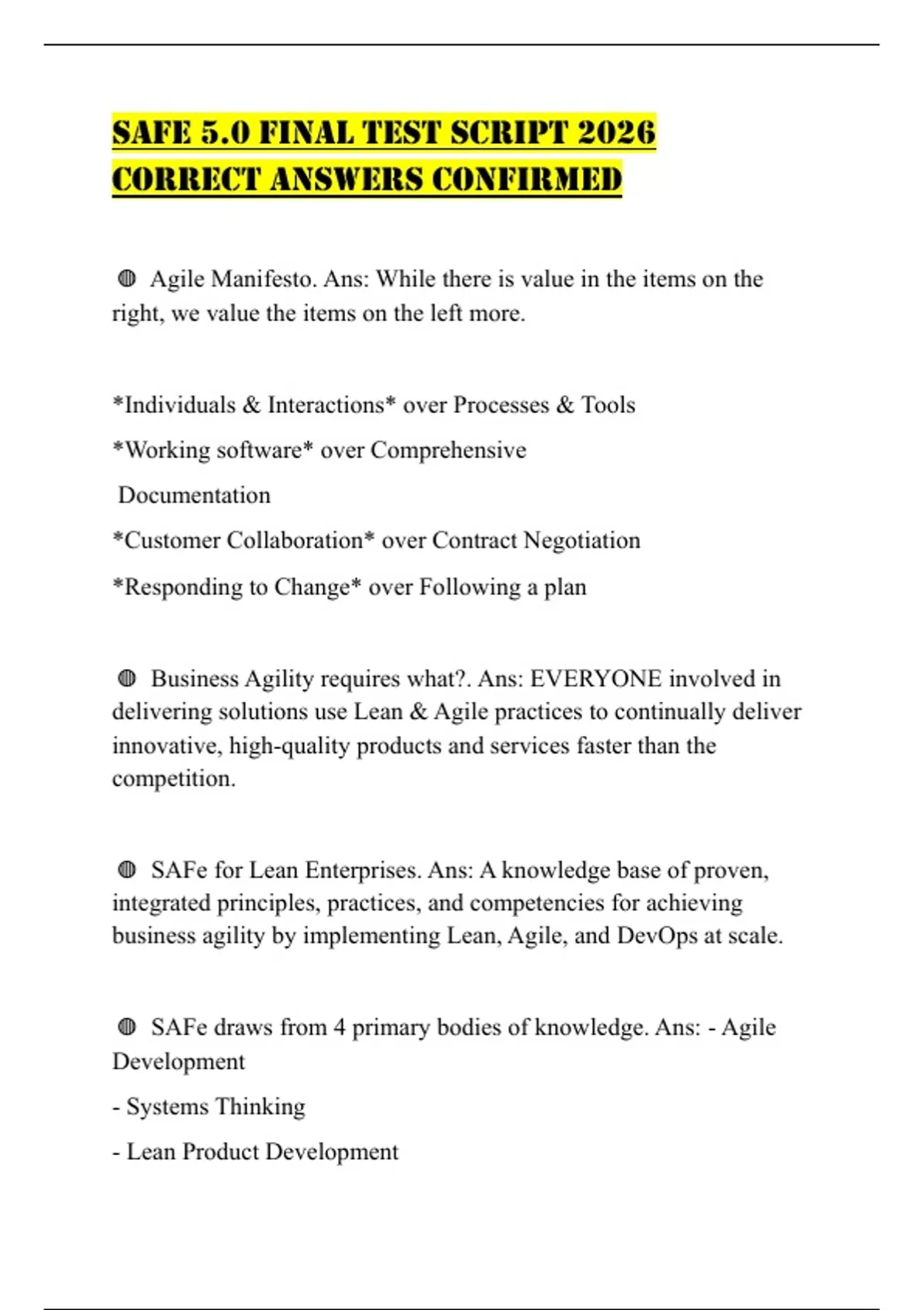 ◍ SAFe draws from 4 primary bodies of knowledge. Ans: - Agile