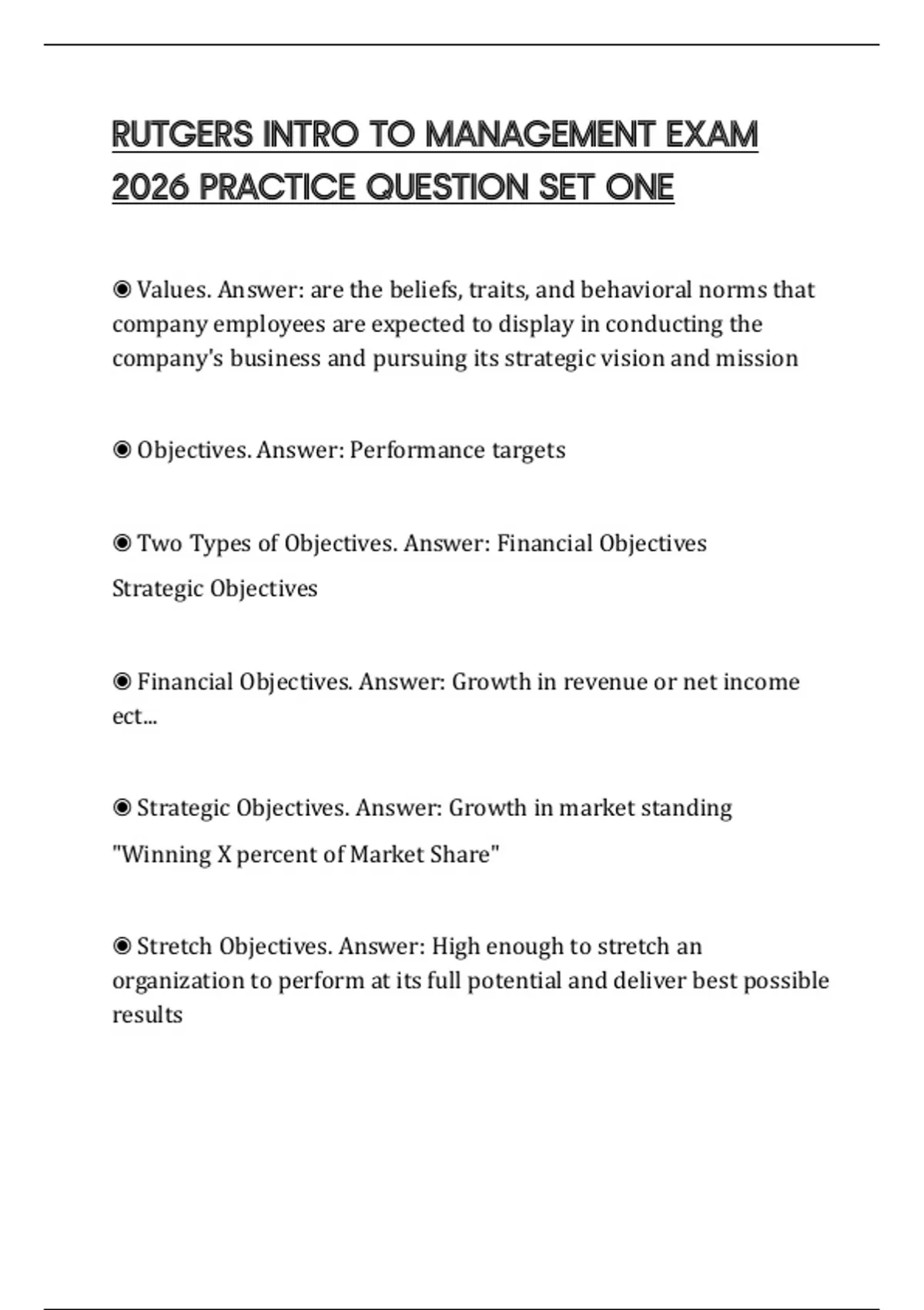 RUTGERS INTRO TO MANAGEMENT EXAM 2026 PRACTICE QUESTION SET ONE
