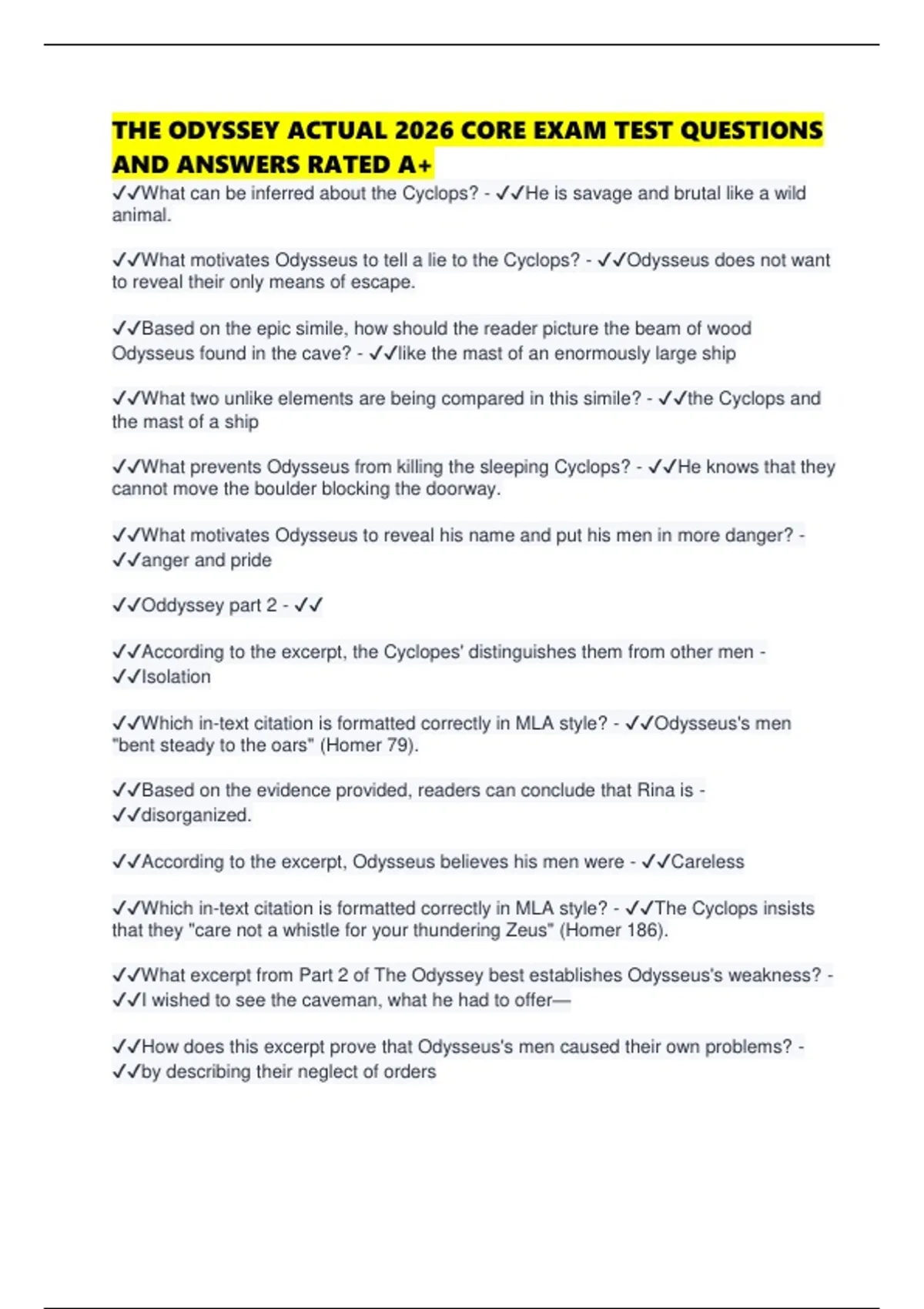 THE ODYSSEY ACTUAL 2026 CORE EXAM TEST QUESTIONS AND ANSWERS RATED A+