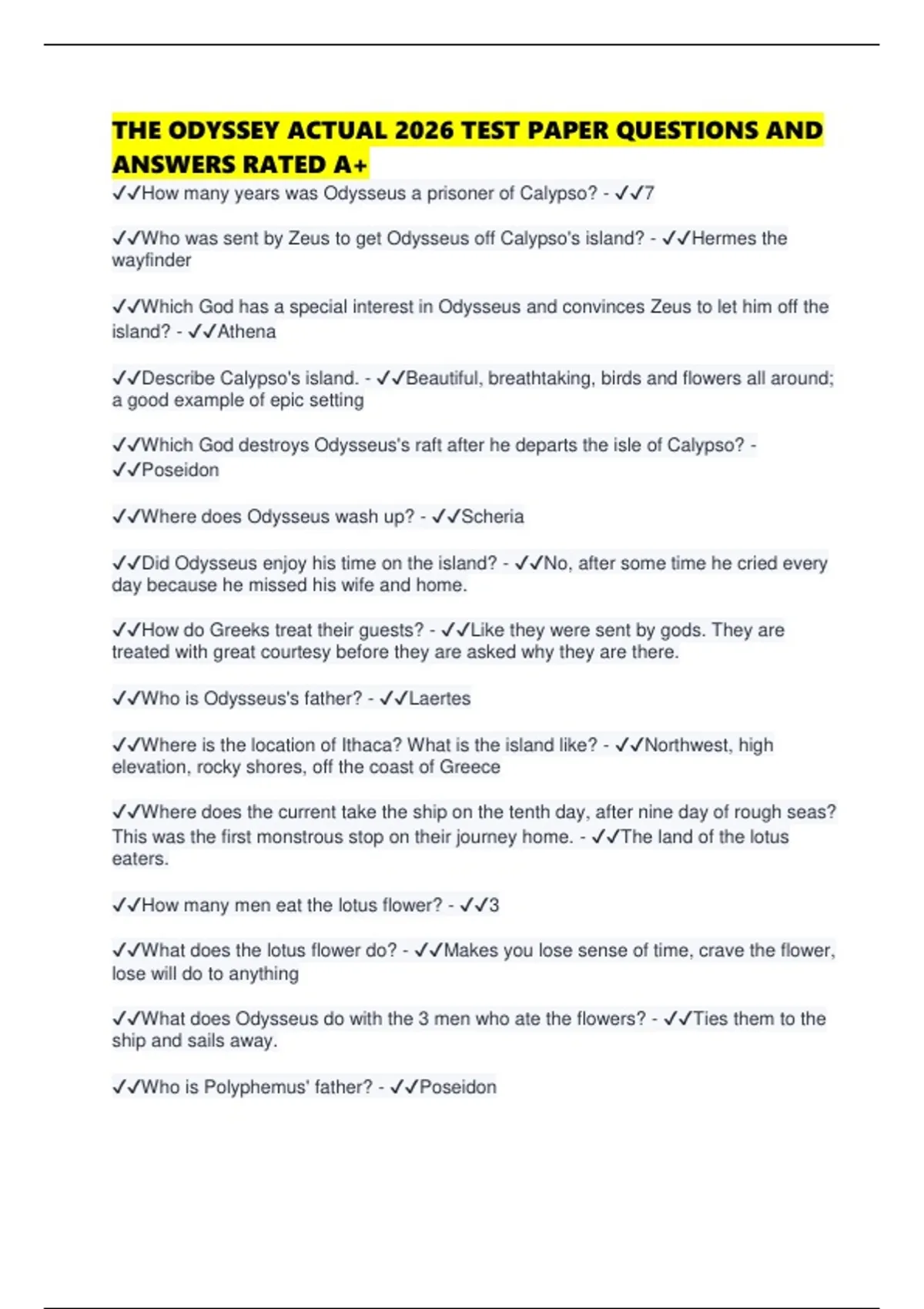 THE ODYSSEY ACTUAL 2026 TEST PAPER QUESTIONS AND ANSWERS RATED A+