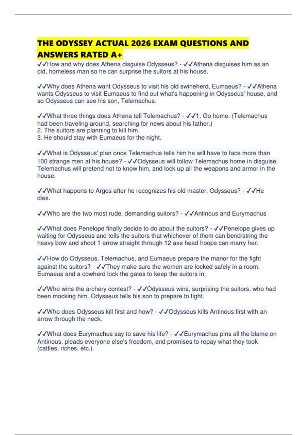 THE ODYSSEY ACTUAL 2026 EXAM QUESTIONS AND ANSWERS RATED A+