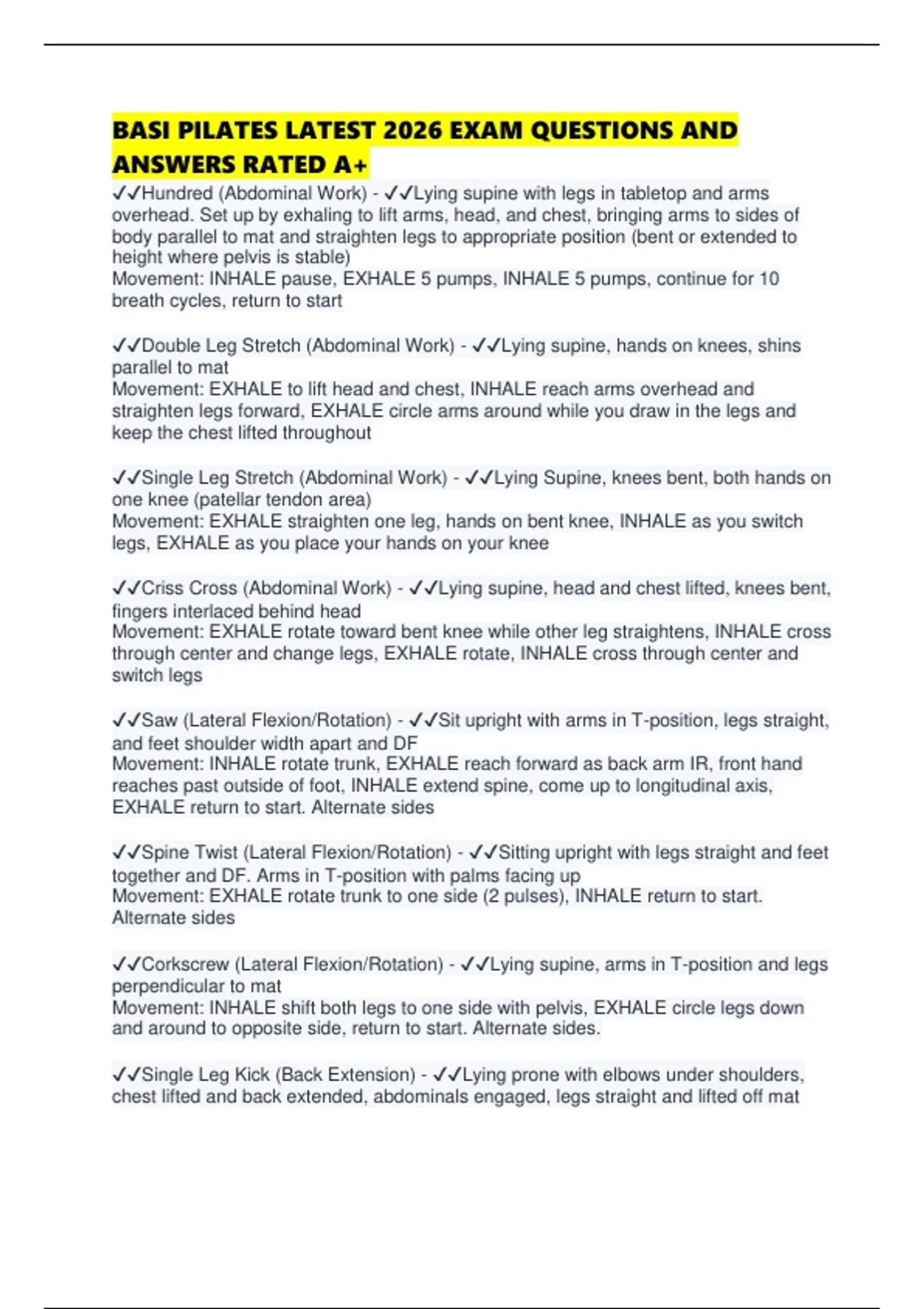 BASI PILATES LATEST 2026 EXAM QUESTIONS AND ANSWERS RATED A.pdf