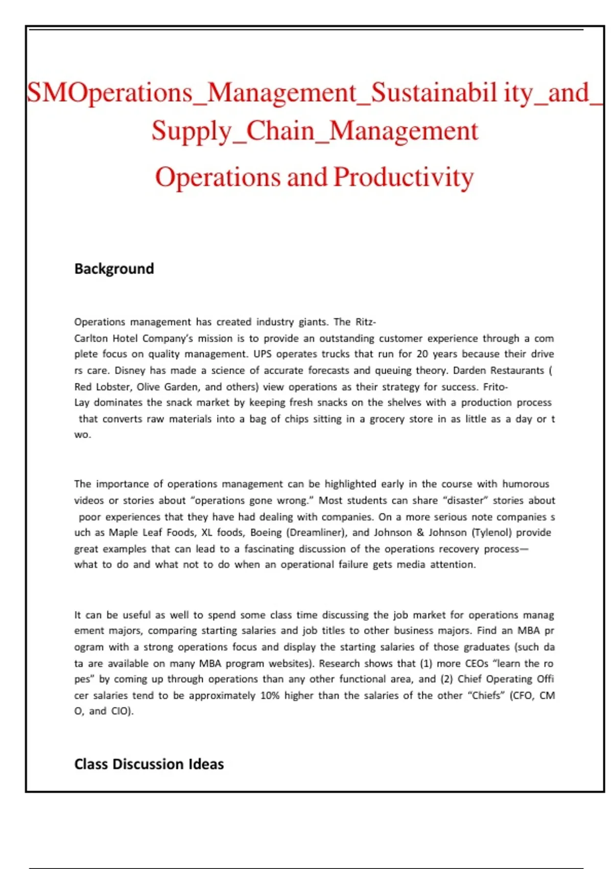 TheVimportanceVofVoperationsVmanagementVcanVbeVhighlightedVearlyVinVtheVcourseVwithVhumorousV