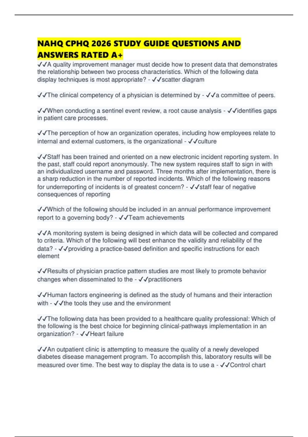 , ✔✔A healthcare quality professional has been asked to examine a new method of