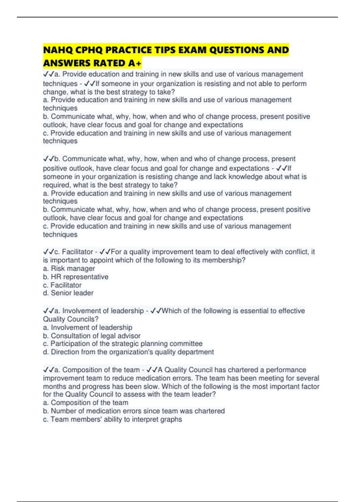 ✔✔b. Involve individuals directly affected by the change - ✔✔The best way to facilitate