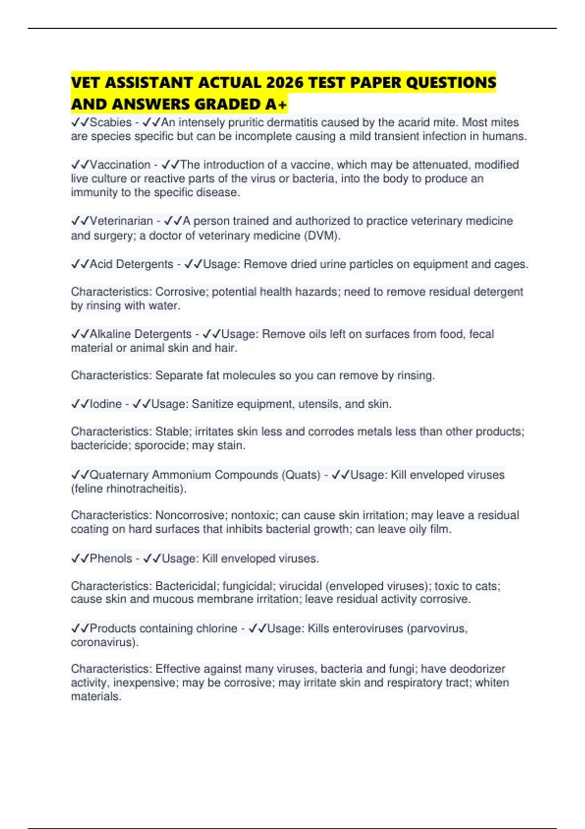 VET ASSISTANT ACTUAL 2026 TEST PAPER QUESTIONS AND ANSWERS GRADED A.pdf