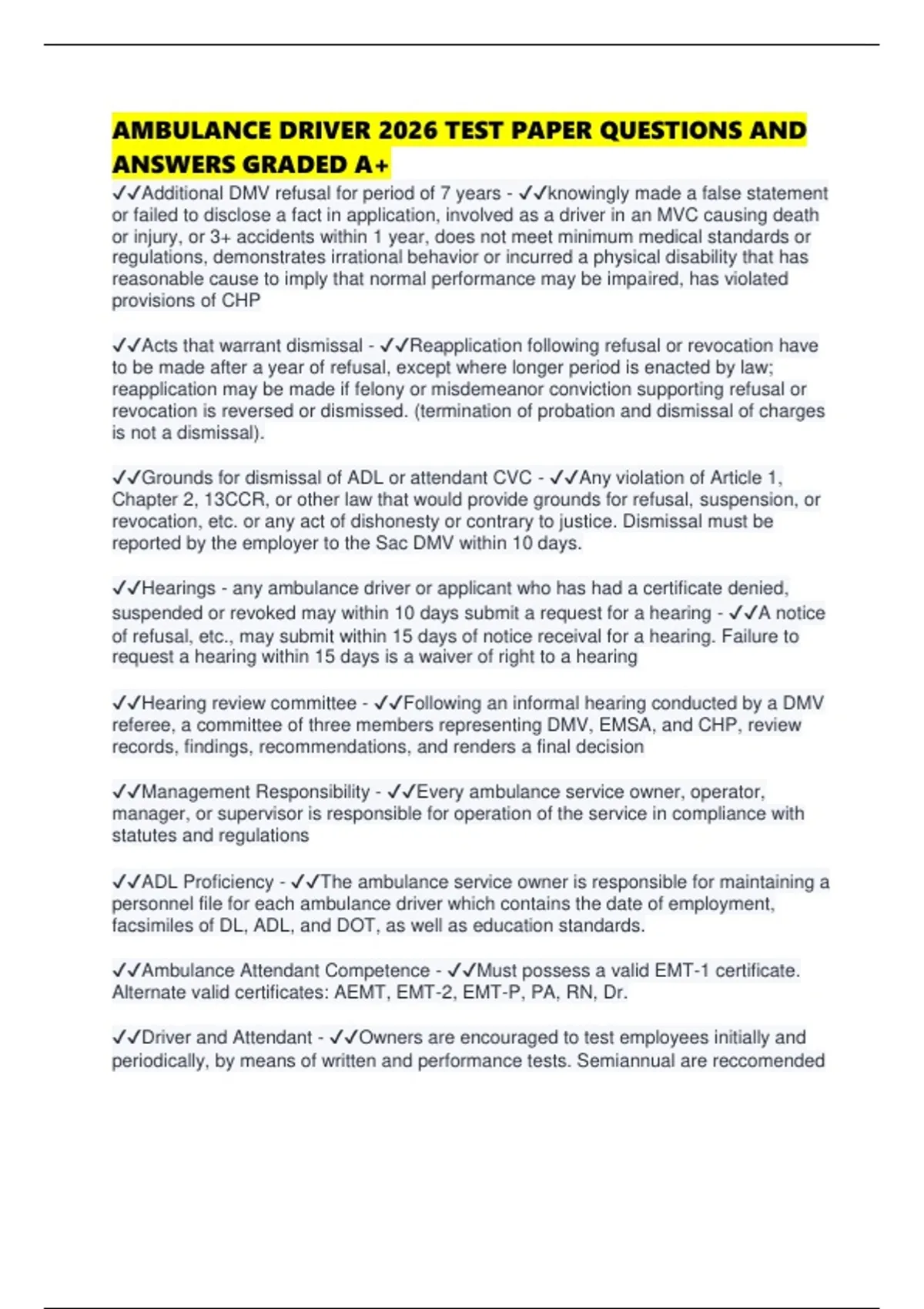 ✔✔Ambulance Attendant Competence - ✔✔Must possess a valid EMT-1 certificate.