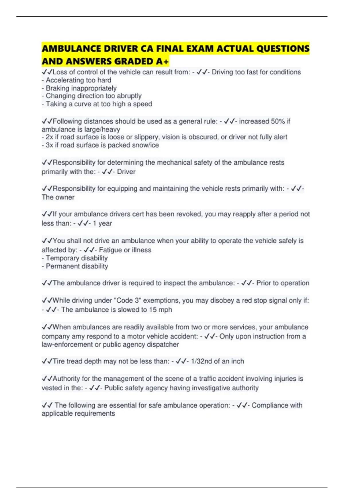 ✔✔The ambulance driver is required to inspect the ambulance: - ✔✔- Prior to operation