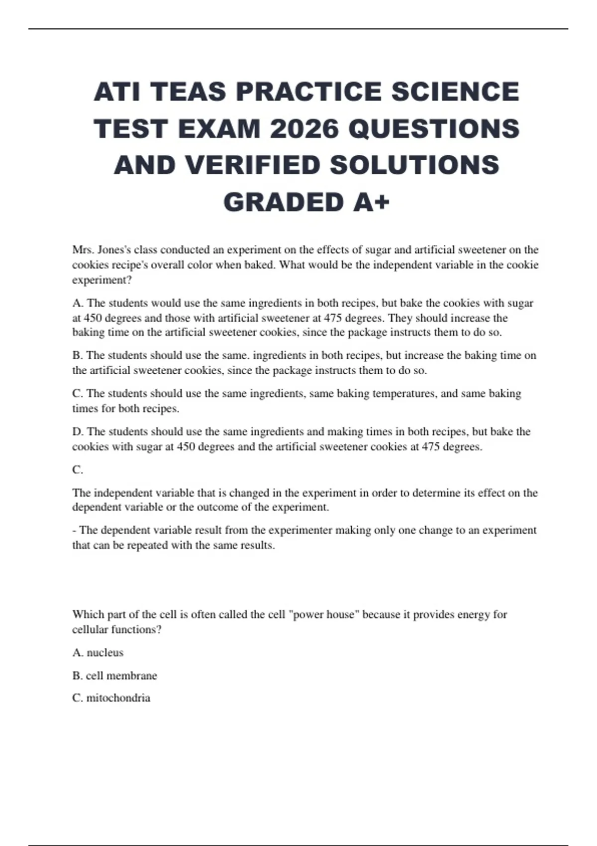 ATI TEAS PRACTICE SCIENCE