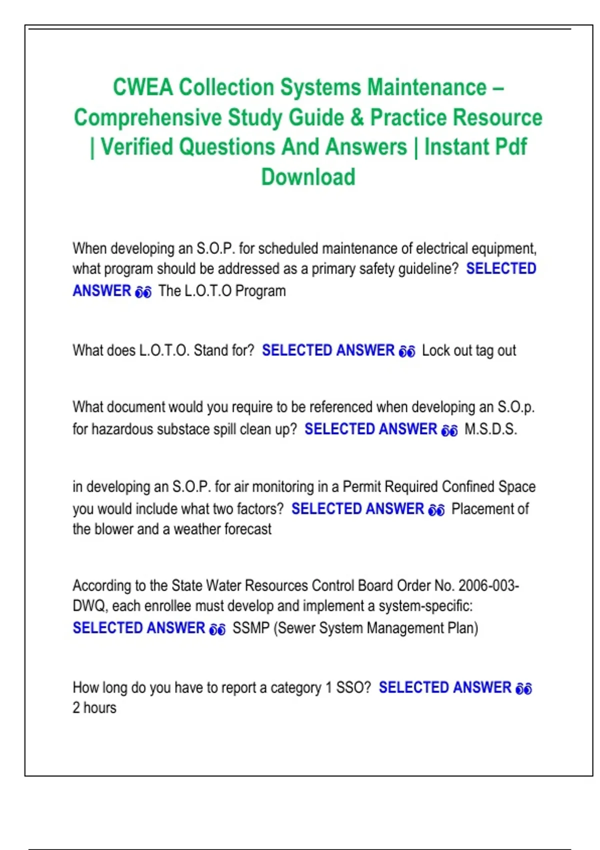 SELECTED ANSWER 👀 SSMP (Sewer System Management Plan)