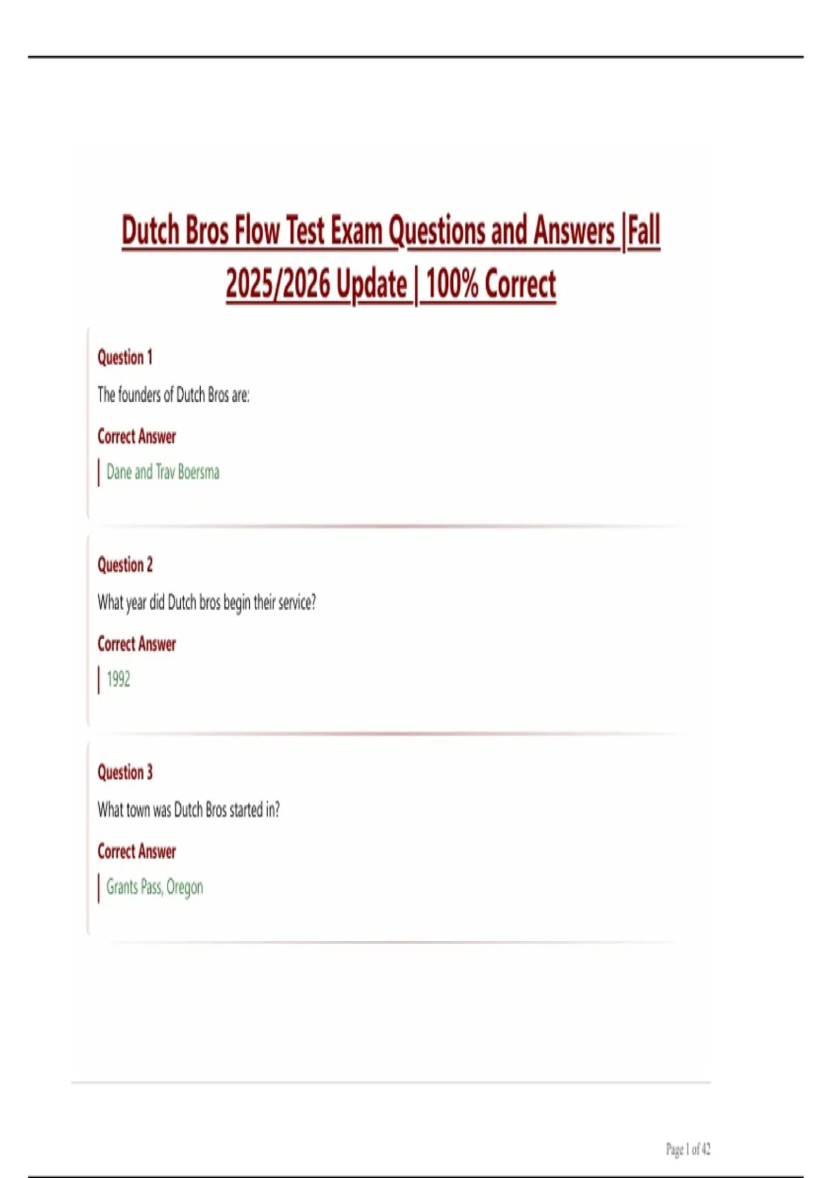 Dutch Bros Flow Test Exam Questions and Answers |Fall 2025/2026 Update | 100% Correct