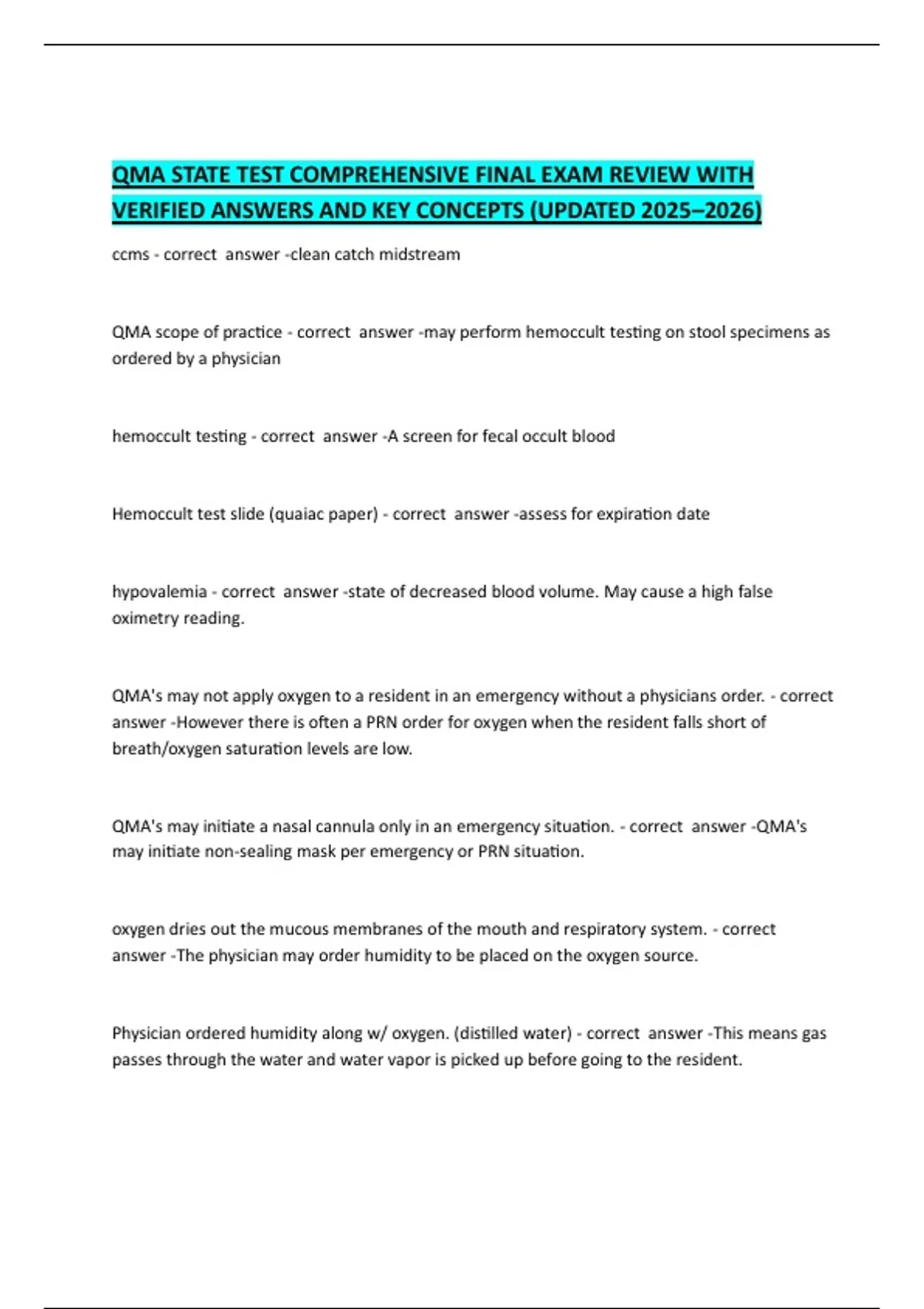 QMA STATE TEST COMPREHENSIVE FINAL EXAM REVIEW WITH