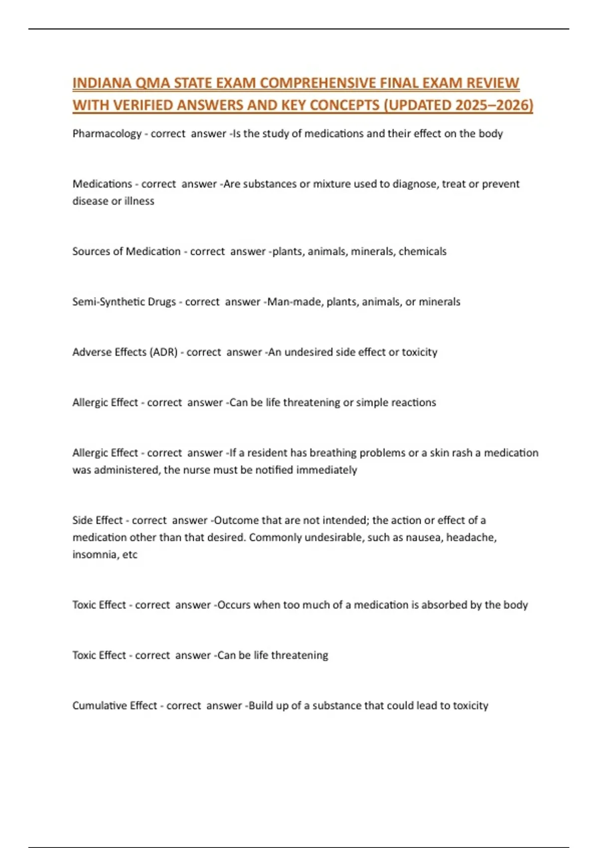 INDIANA QMA STATE EXAM COMPREHENSIVE FINAL EXAM REVIEW