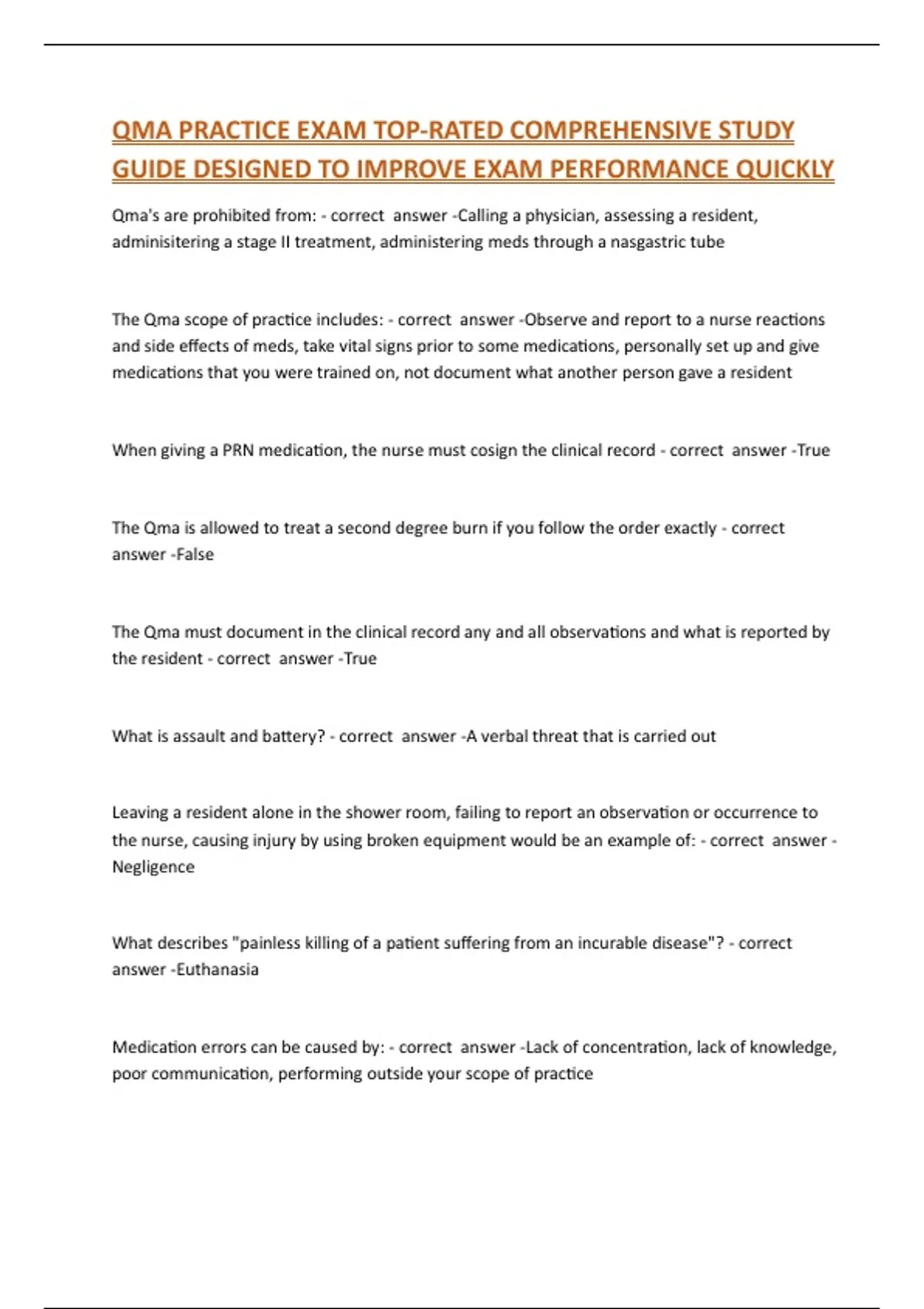 QMA PRACTICE EXAM TOP-RATED COMPREHENSIVE STUDY