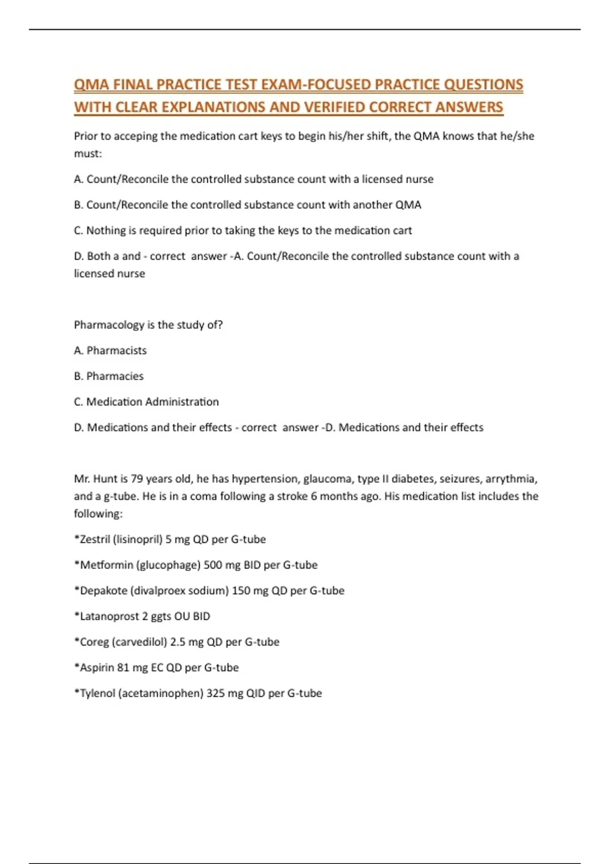 QMA FINAL PRACTICE TEST EXAM-FOCUSED PRACTICE QUESTIONS