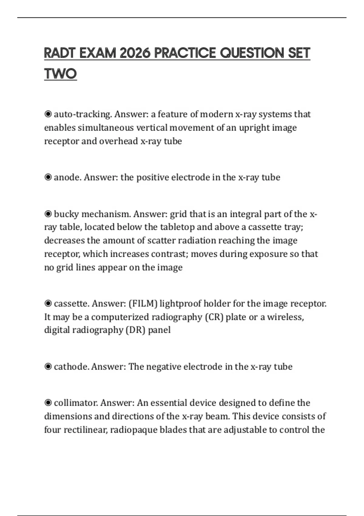 RADT EXAM 2026 PRACTICE QUESTION SET TWO