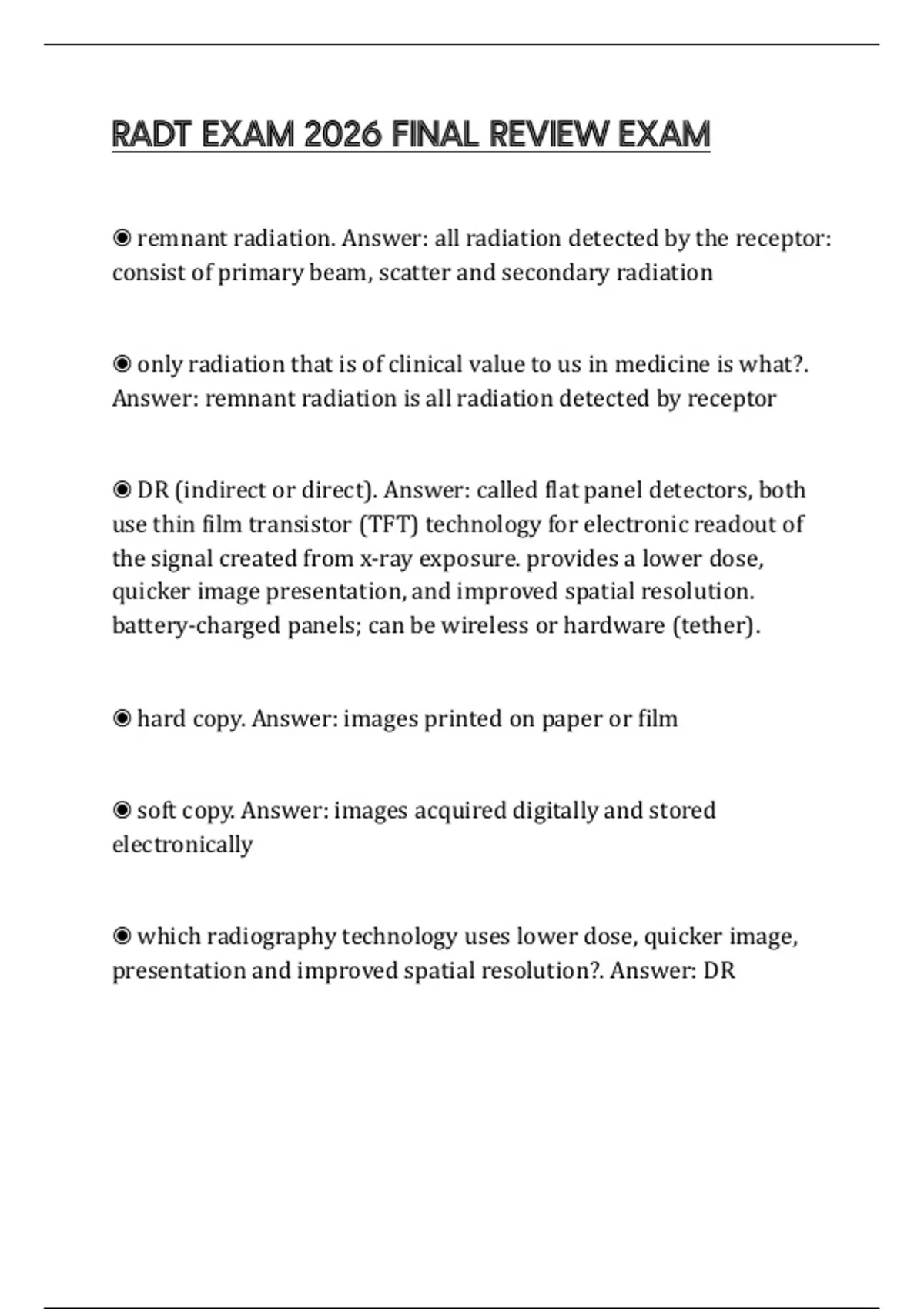 RADT EXAM 2026 FINAL REVIEW EXAM