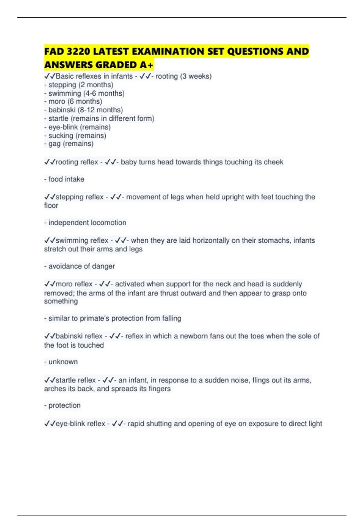 ✔✔stepping reflex - ✔✔- movement of legs when held upright with feet touching the