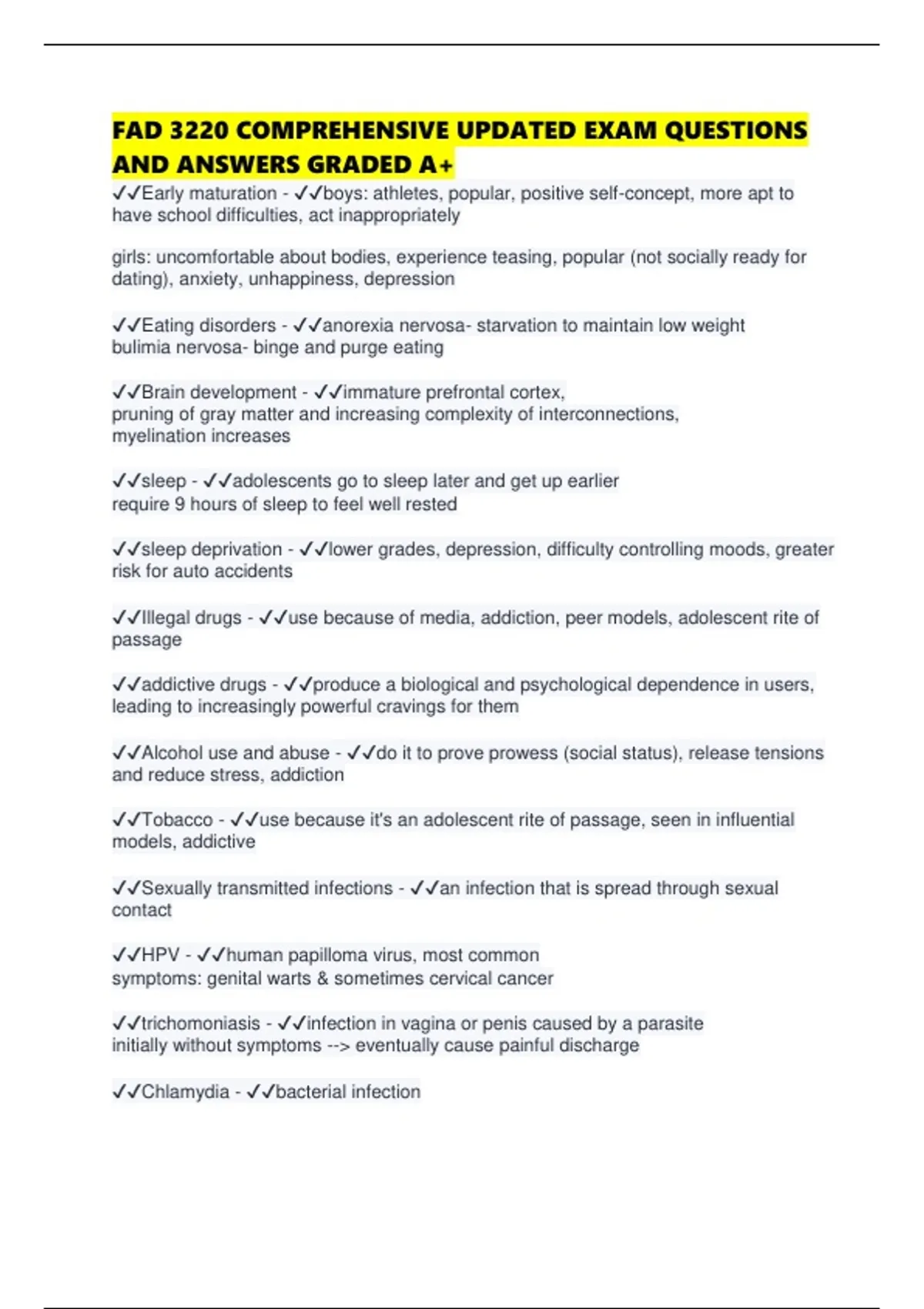 FAD 3220 COMPREHENSIVE UPDATED EXAM QUESTIONS