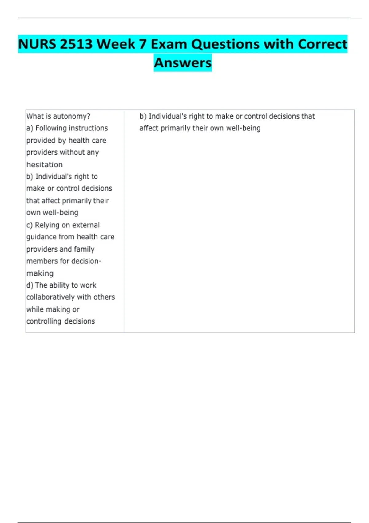 NURS 2513 Week 7 Exam Questions with Correct