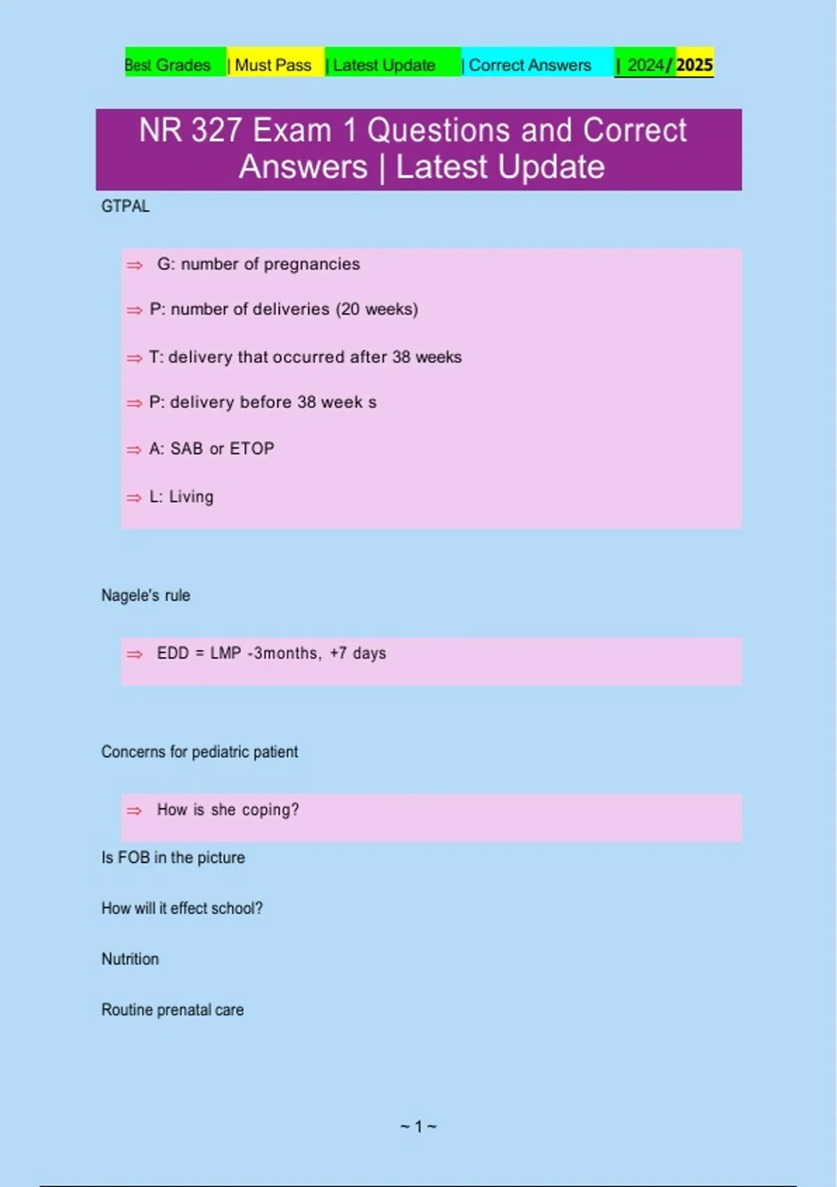 NR 327 Exam 1 Questions and Correct
