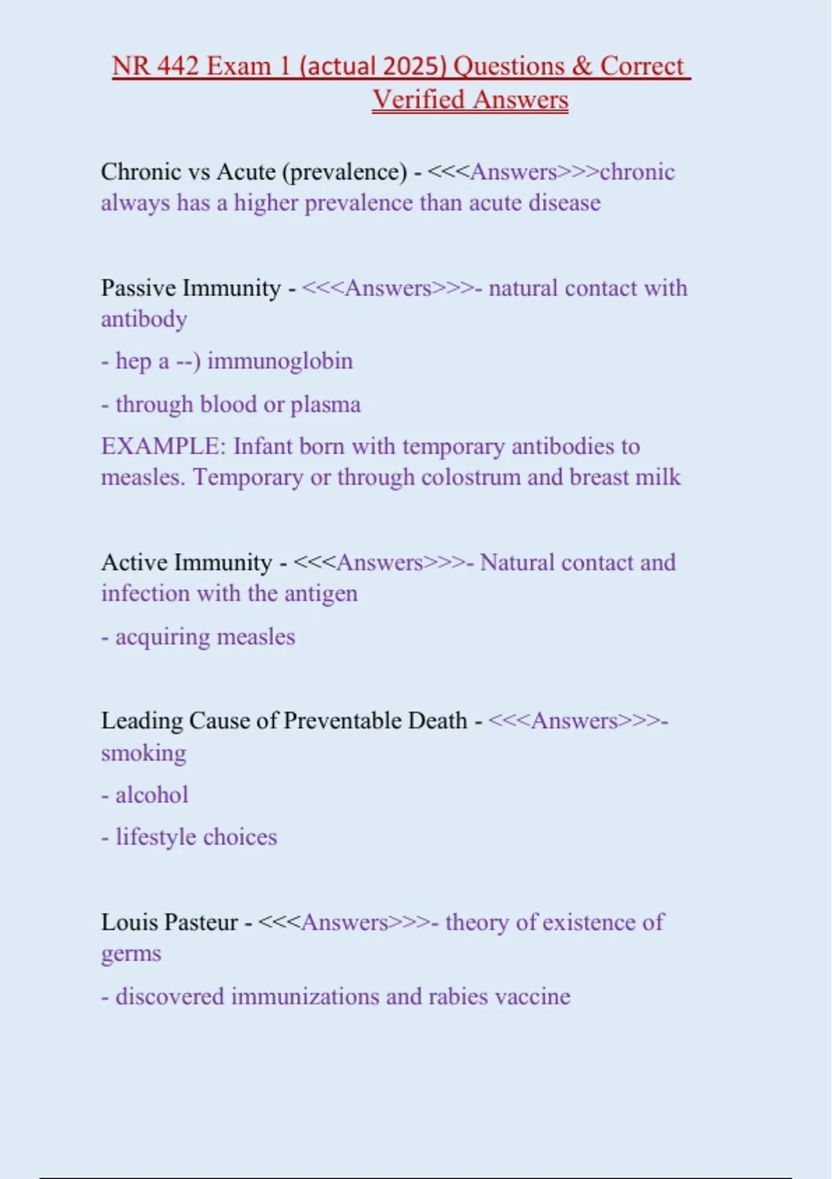, NR 442 Exam 1 (actual 2025) Questions & Correct Verified