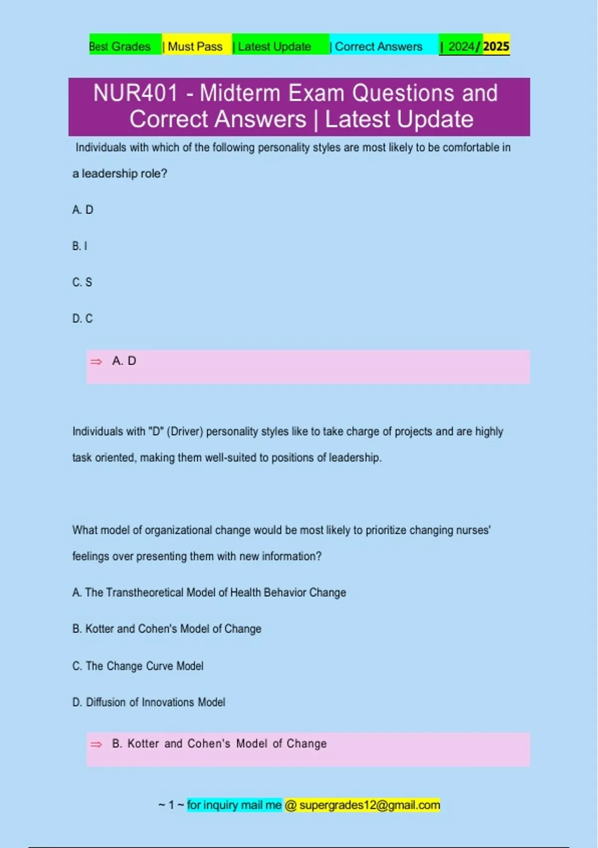 Best Grades | Must Pass | Latest Update | Correct Answers | 2024/ 2025