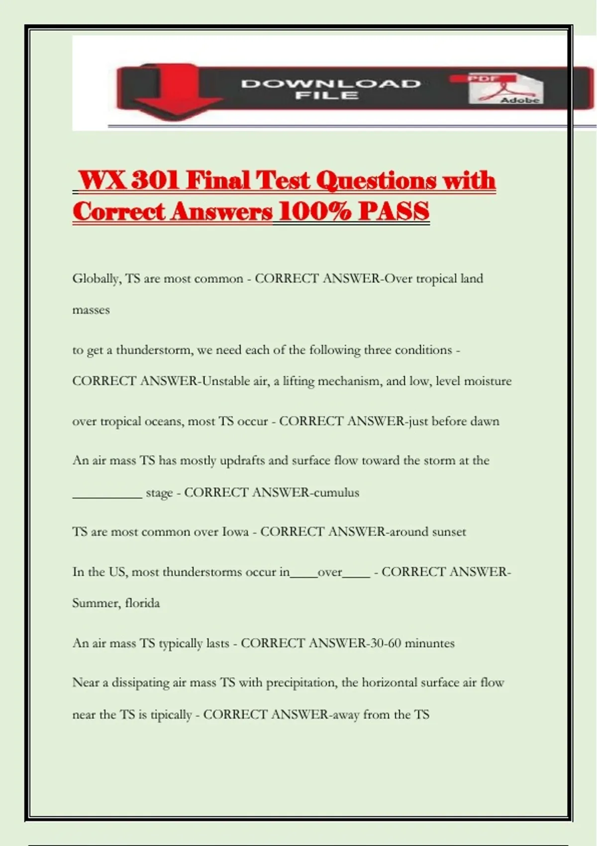 WX 301 Final Test Questions with Correct Answers 100% PASS