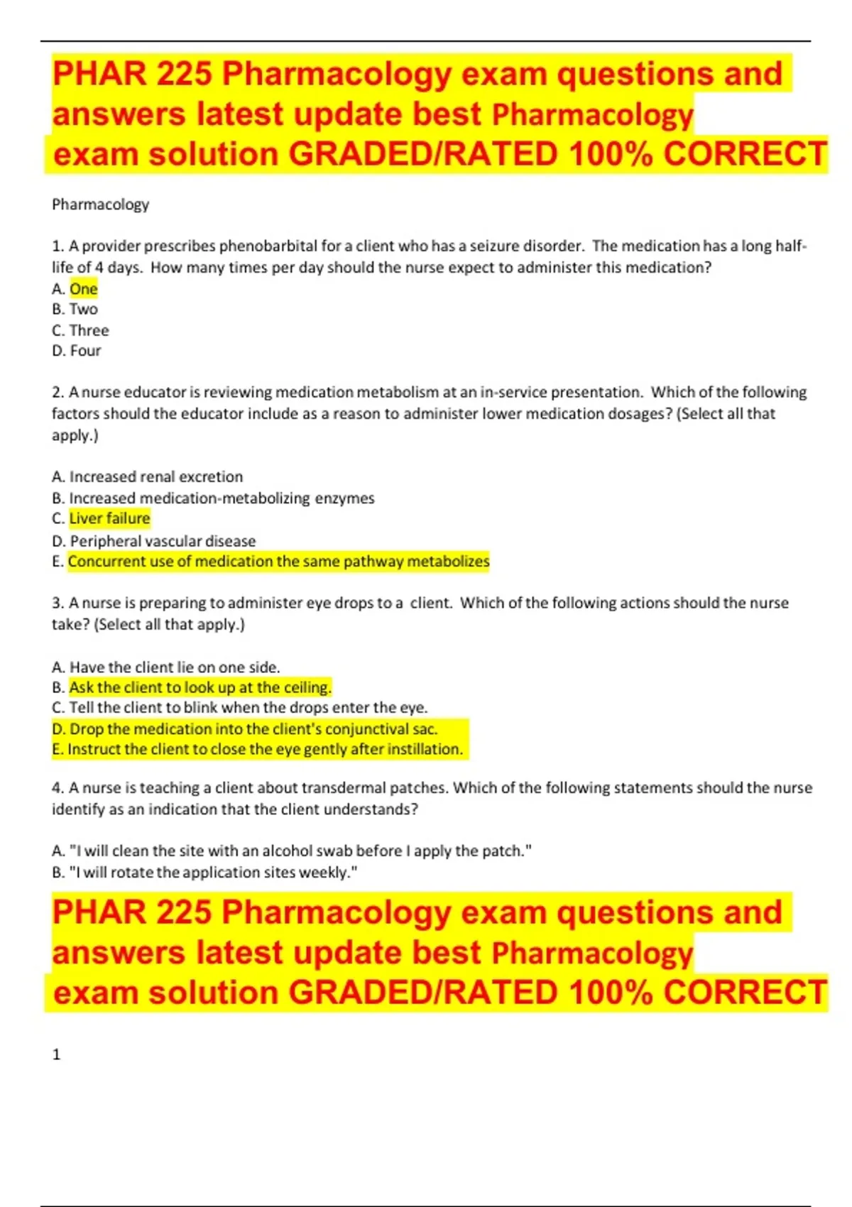 1. A provider prescribes phenobarbital for a client who has a seizure disorder. The medication has a long half-