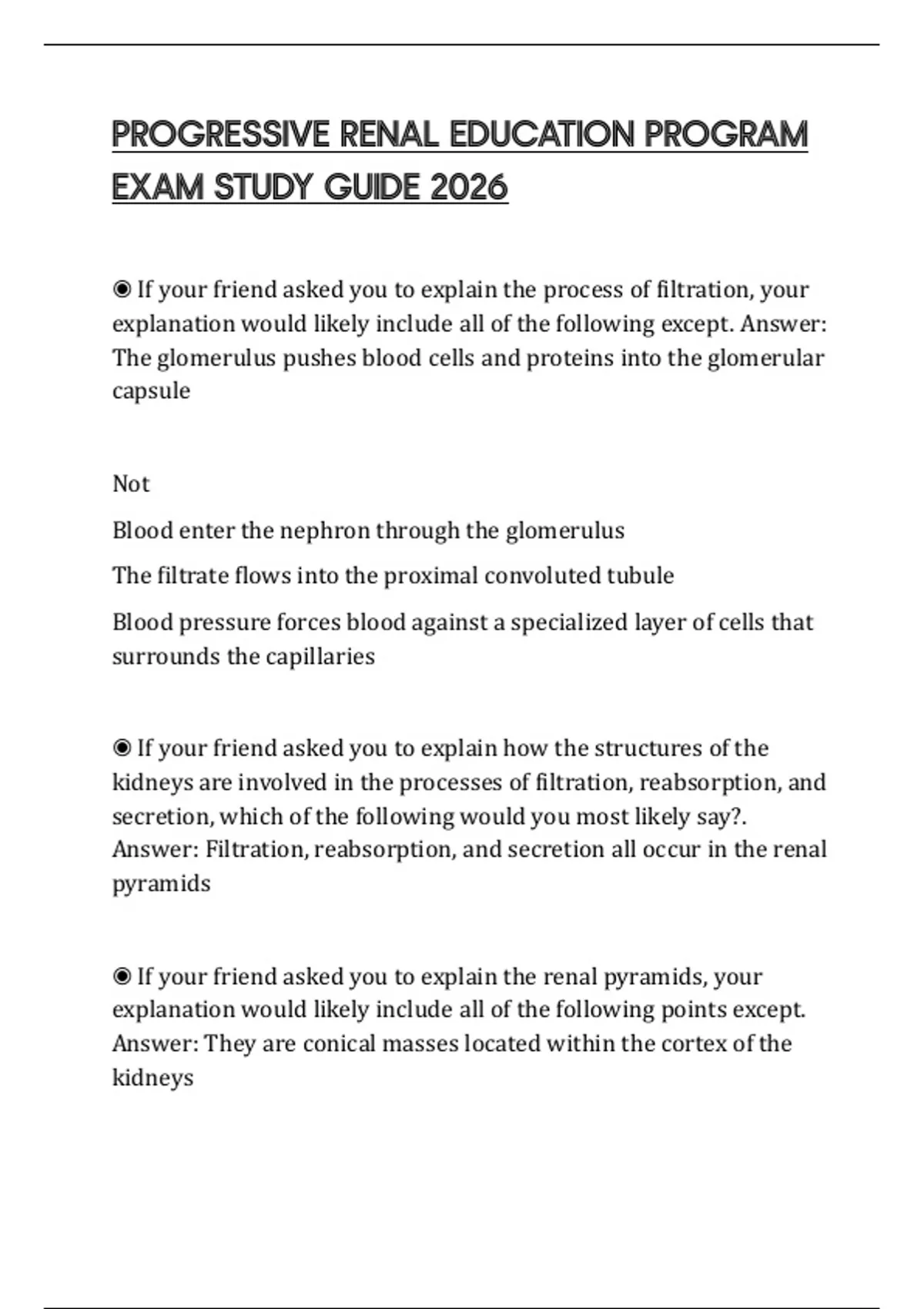 PROGRESSIVE RENAL EDUCATION PROGRAM EXAM STUDY GUIDE 2026