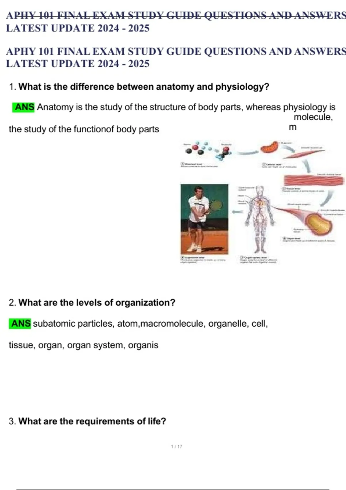 ,APHY 101 FINAL EXAM STUDY GUIDE QUESTIONS AND ANSWERS