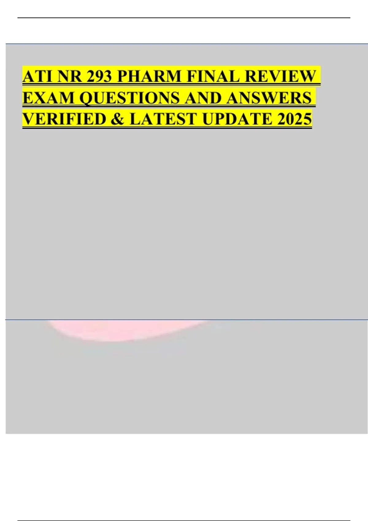 ATI NR 293 PHARM FINAL REVIEW EXAM QUESTIONS AND ANSWERS VERIFIED & LATEST UPDATE 2025