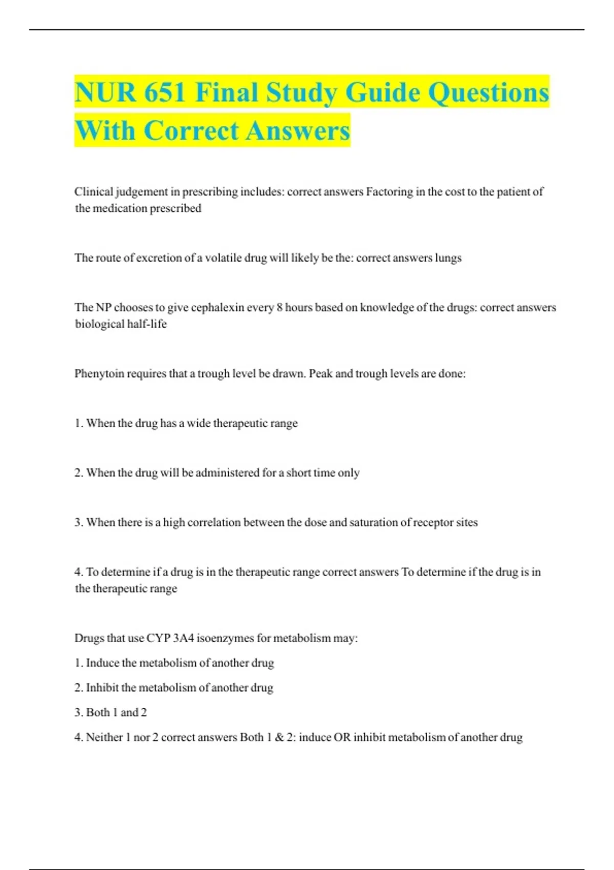 NUR 651 Final Study Guide Questions