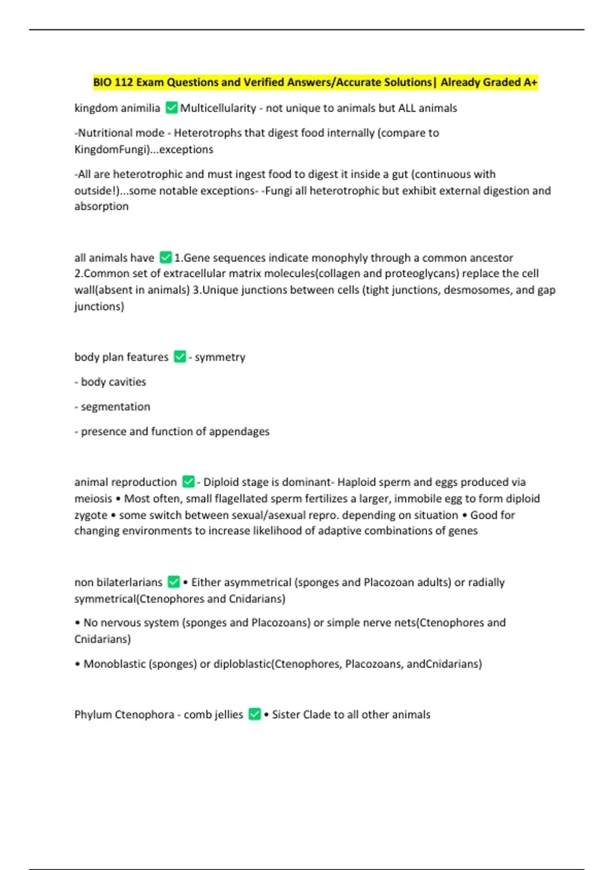 BIO 112 Exam Questions and Verified Answers/Accurate Solutions| Already Graded A+