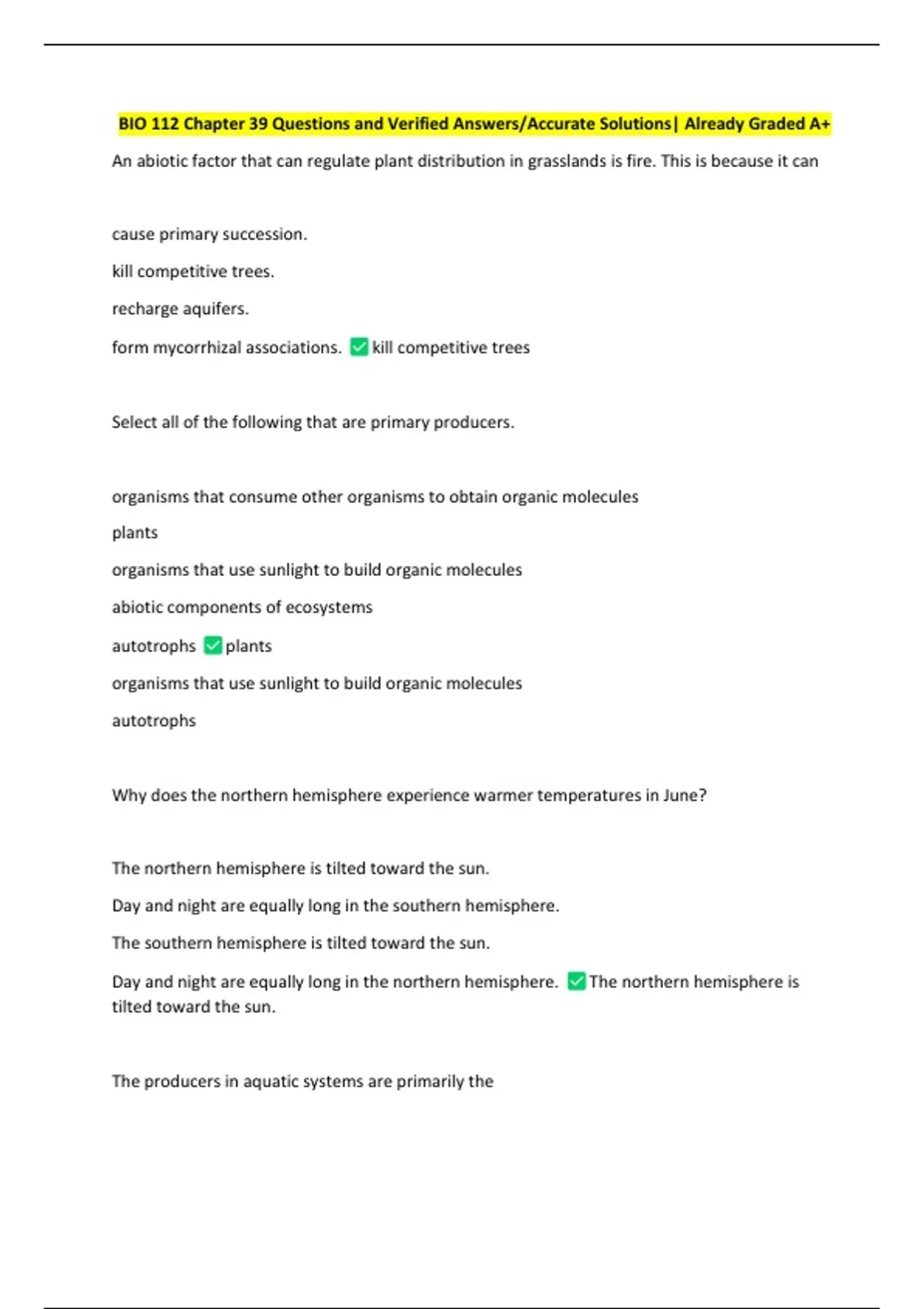 BIO 112 Chapter 39 Questions and Verified Answers/Accurate Solutions| Already Graded A+