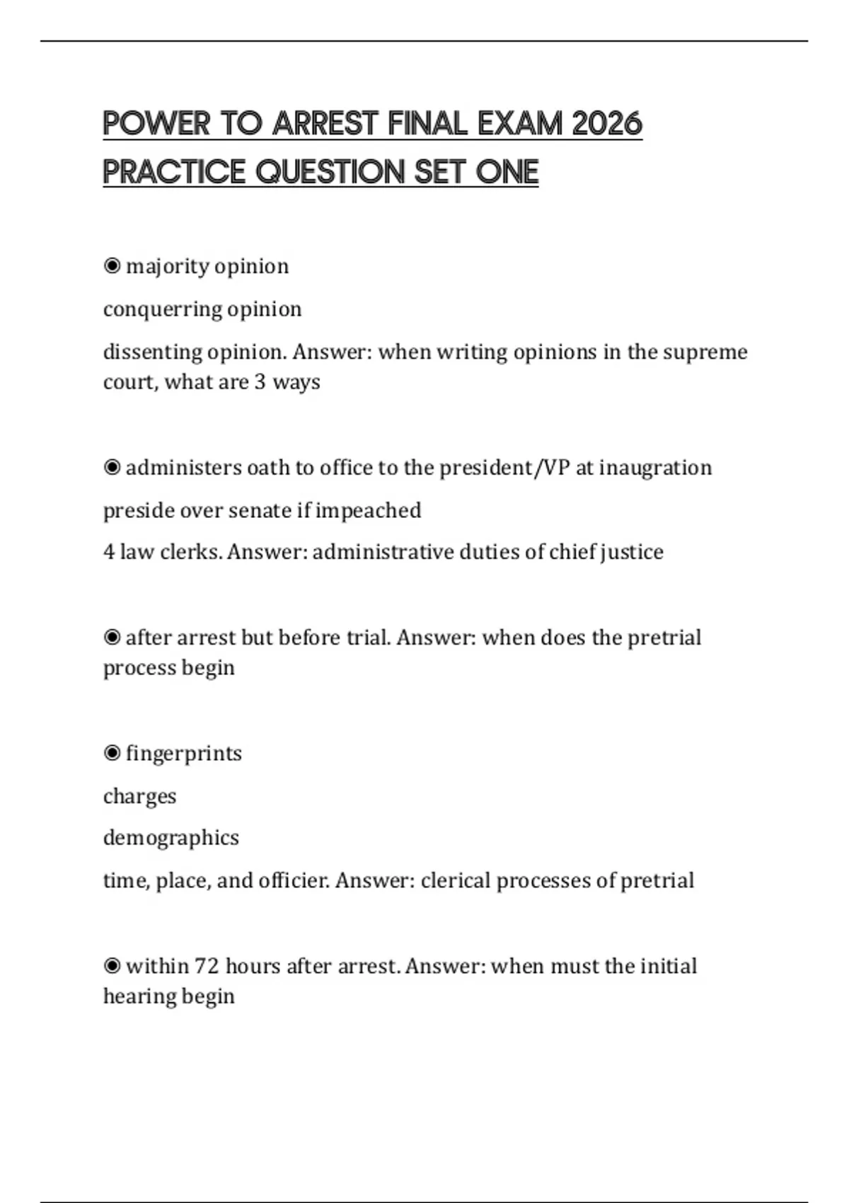 POWER TO ARREST FINAL EXAM 2026