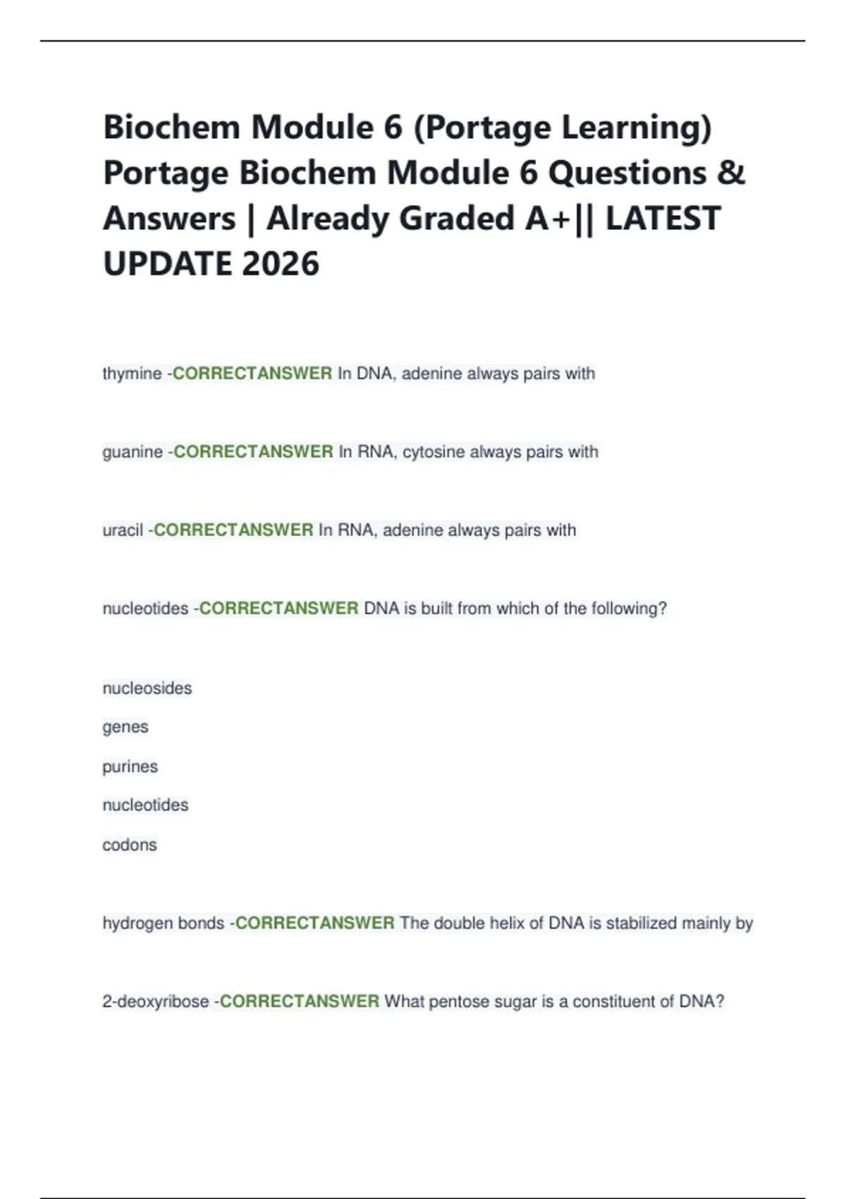 Portage Biochem Module 6 Questions &