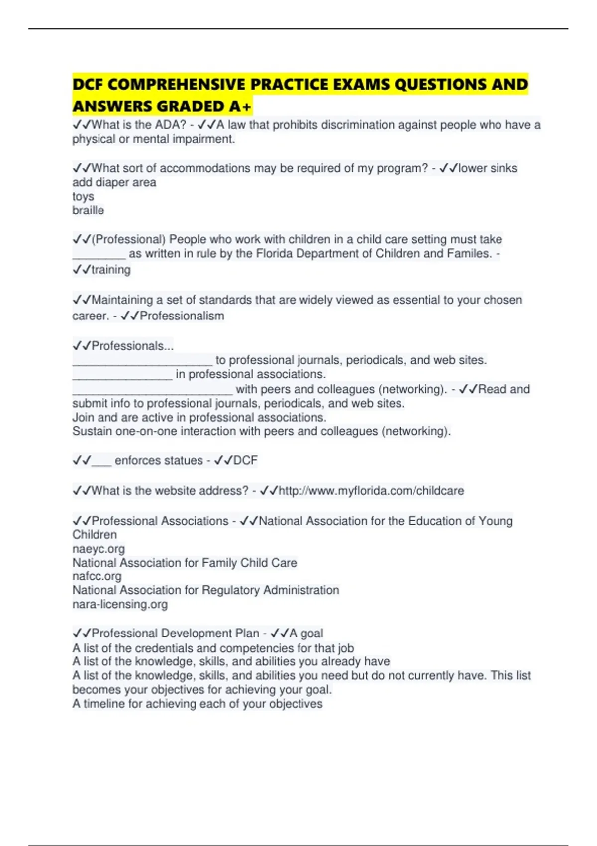 ✔✔(Professional) People who work with children in a child care setting must take