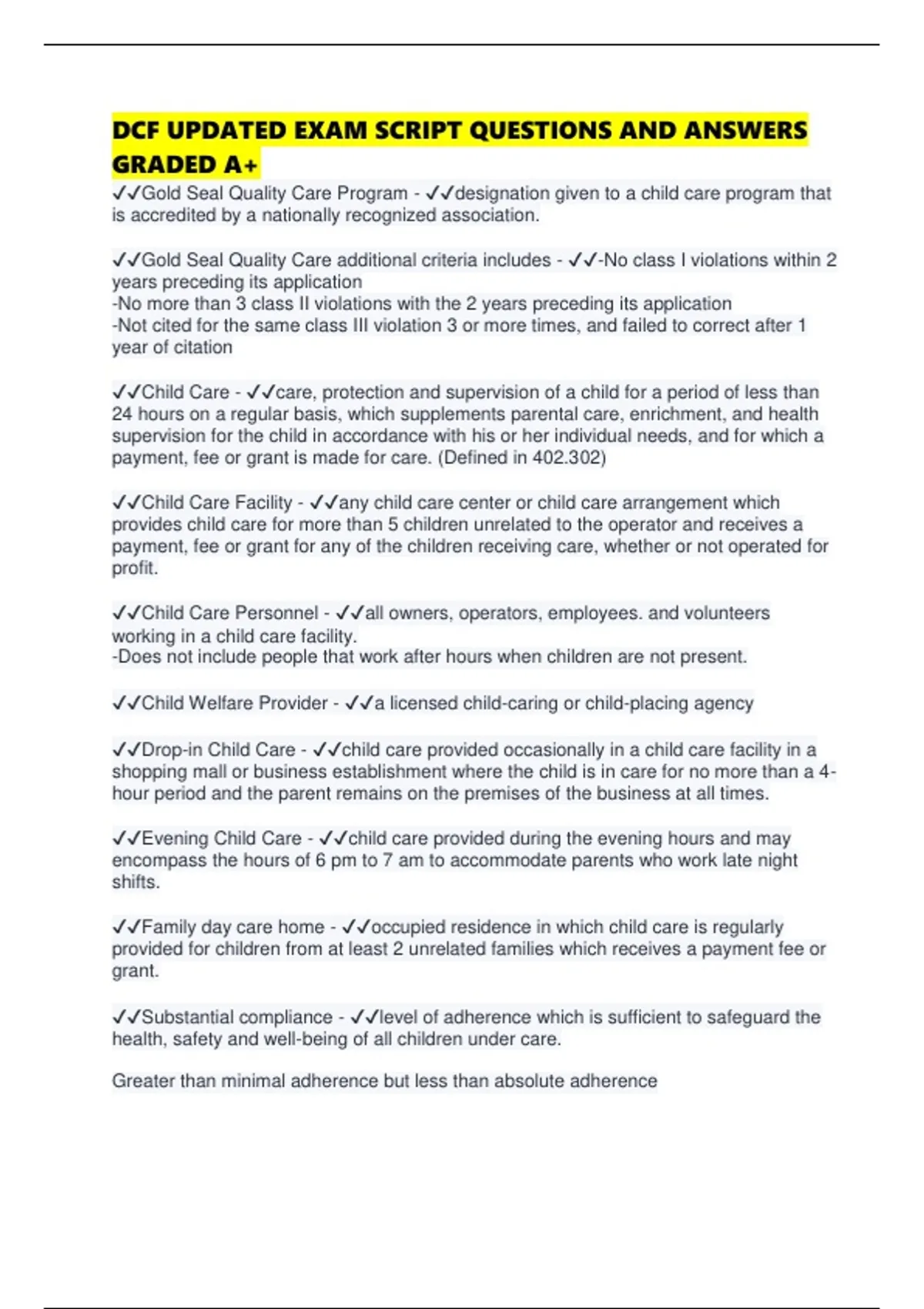 ✔✔Gold Seal Quality Care Program - ✔✔designation given to a child care program that