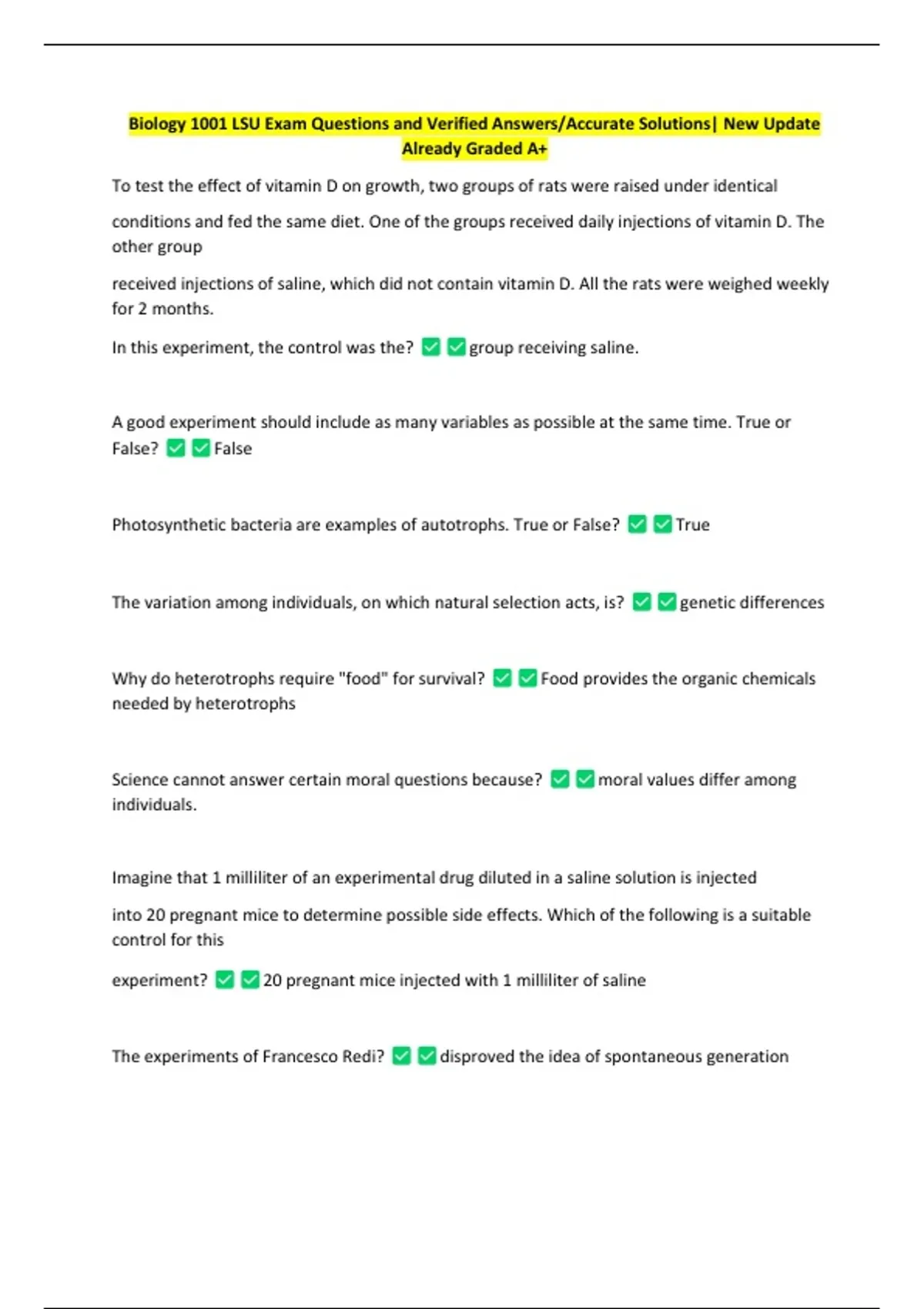 Biology 1001 LSU Exam Questions and Verified Answers/Accurate Solutions| New Update