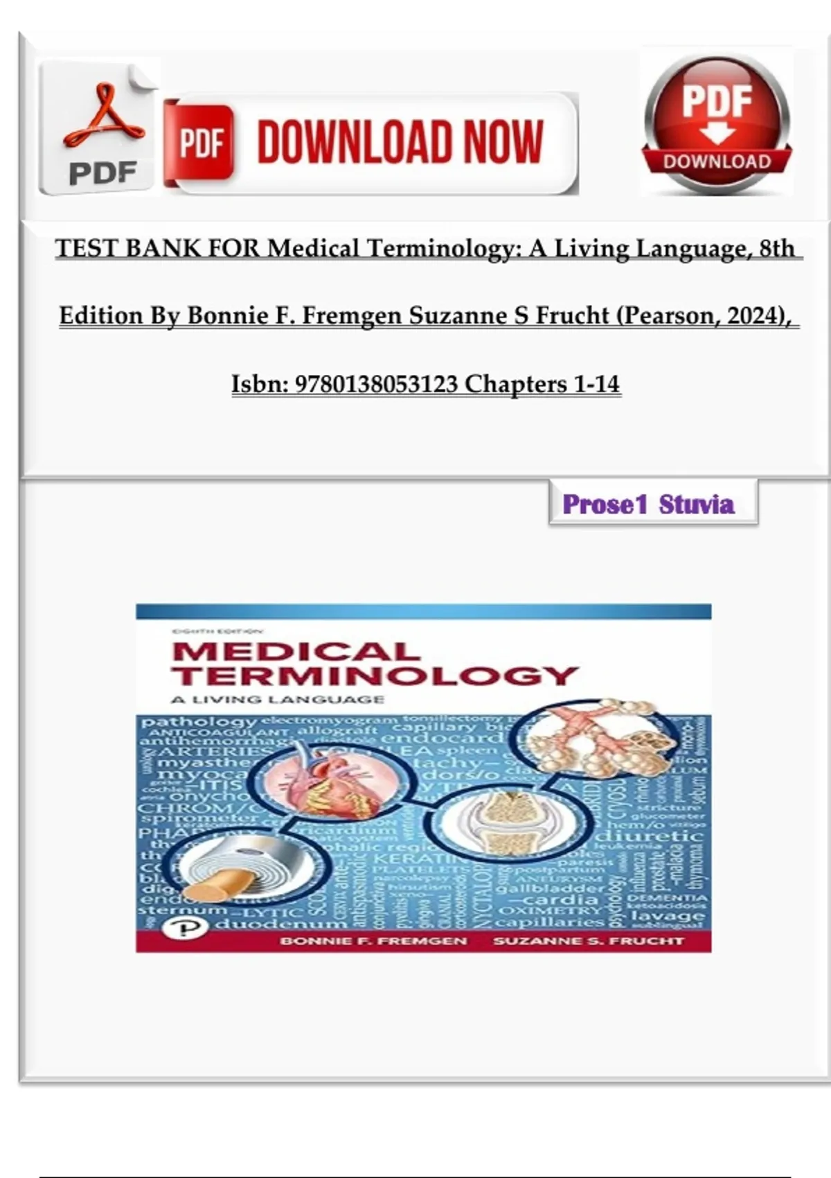 TEST BANK FOR Medical Terminology: A Living Language, 8th